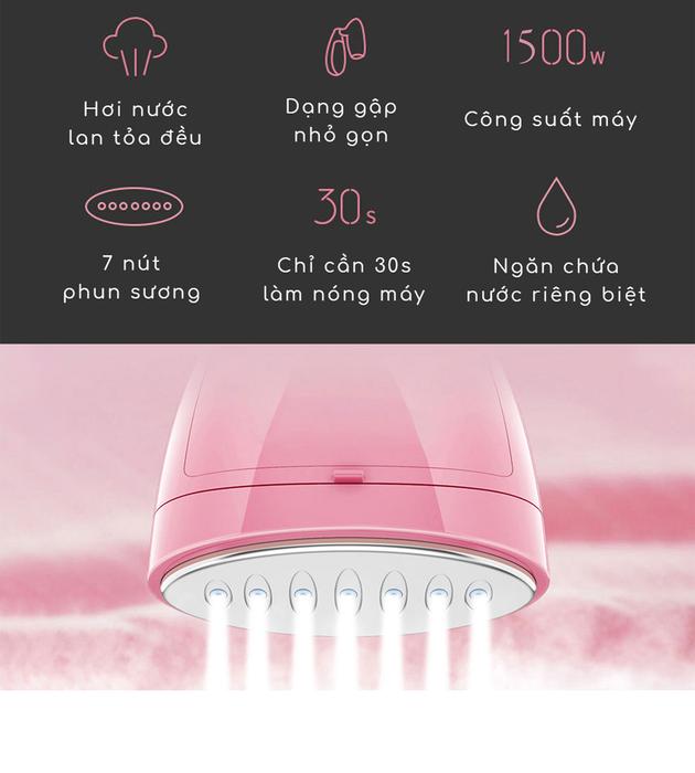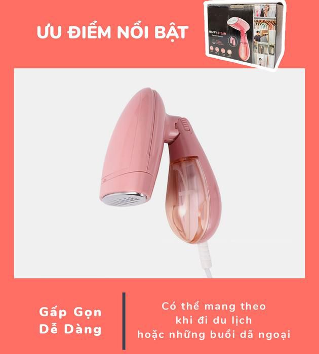 Bàn Ủi Hơi Nước Cầm Tay Siêu Tốc Màu Hồng Pastel Pinky - Bàn Là Du Lịch