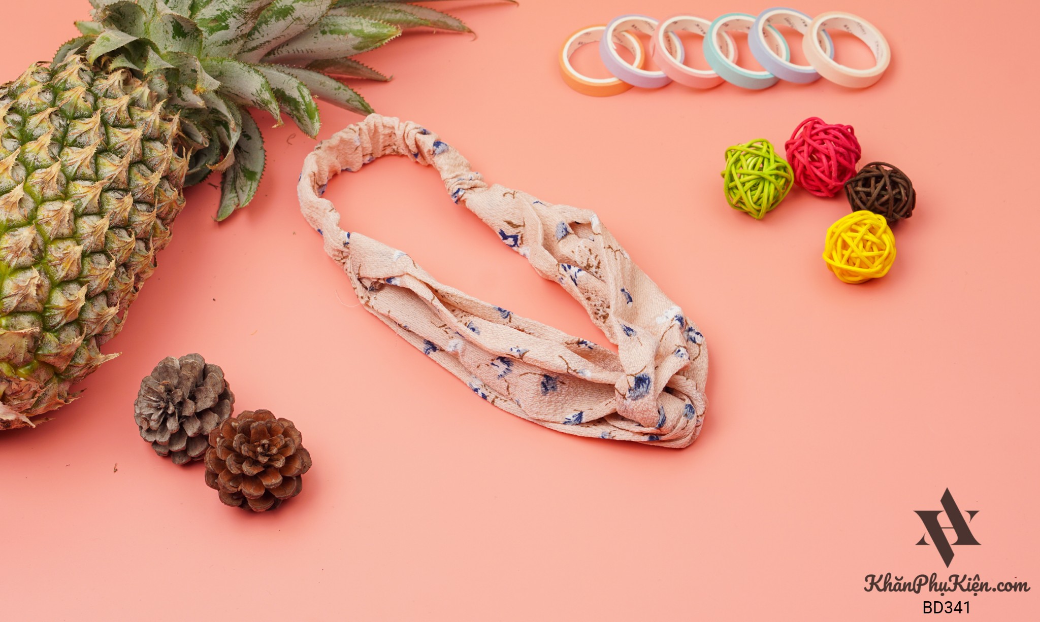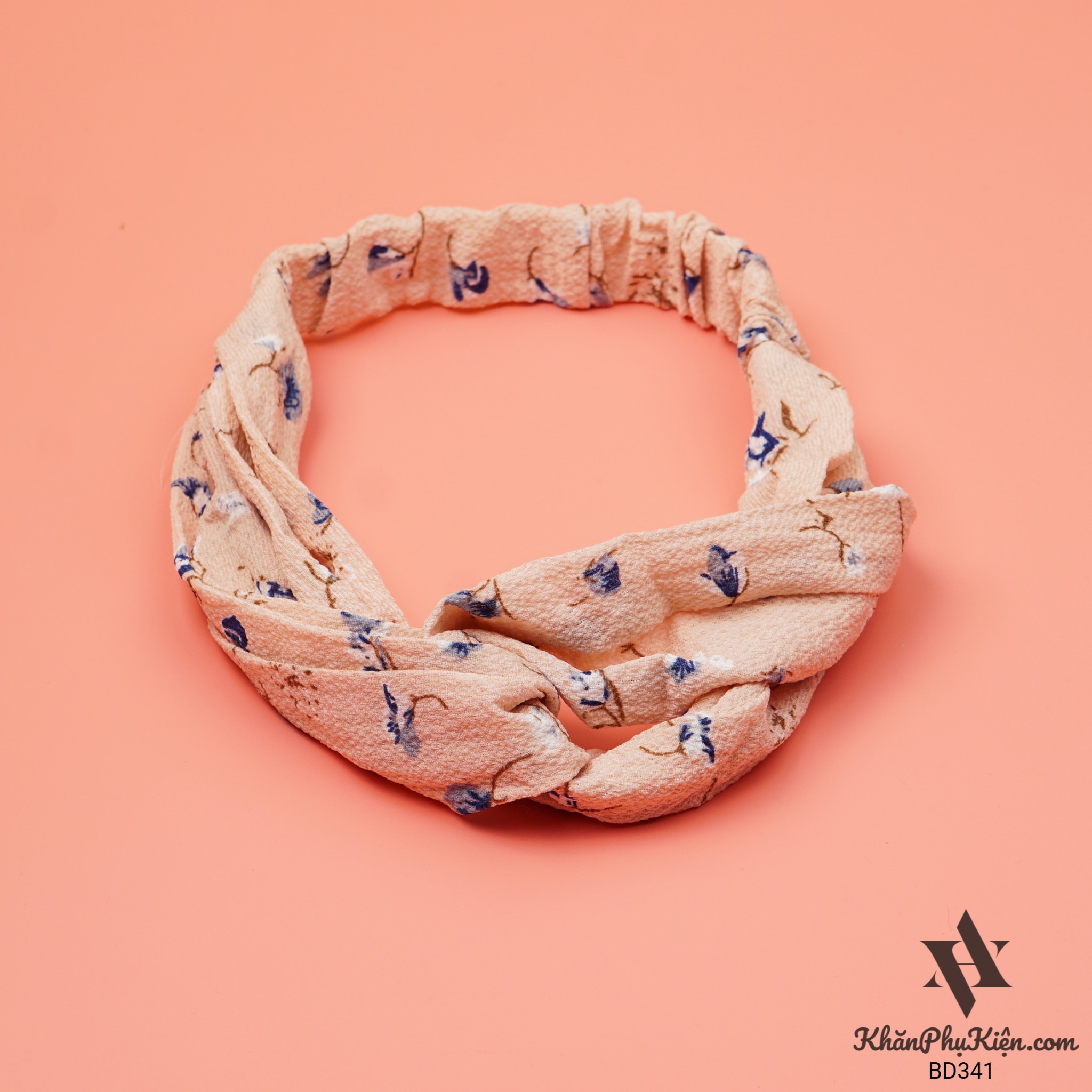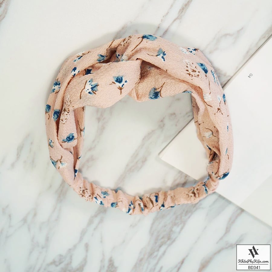 Băng Đô Họa Tiết Hoa Xanh Nền Màu Hồng Cam - Mã BD341