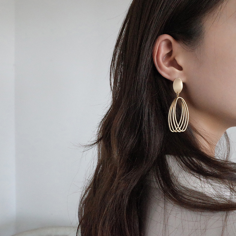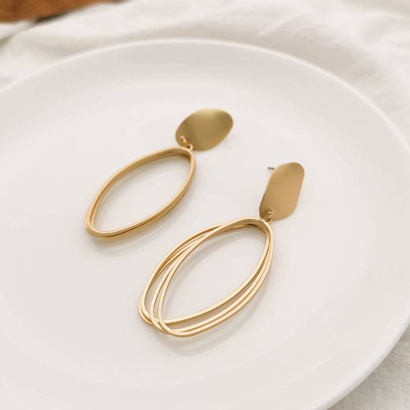 Bông Tai Bạc 925 (Cao Cấp)** Mạ Vàng Nhiều Vòng Elip - Mã BS021