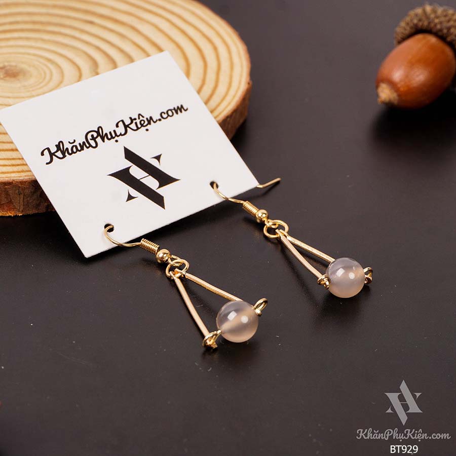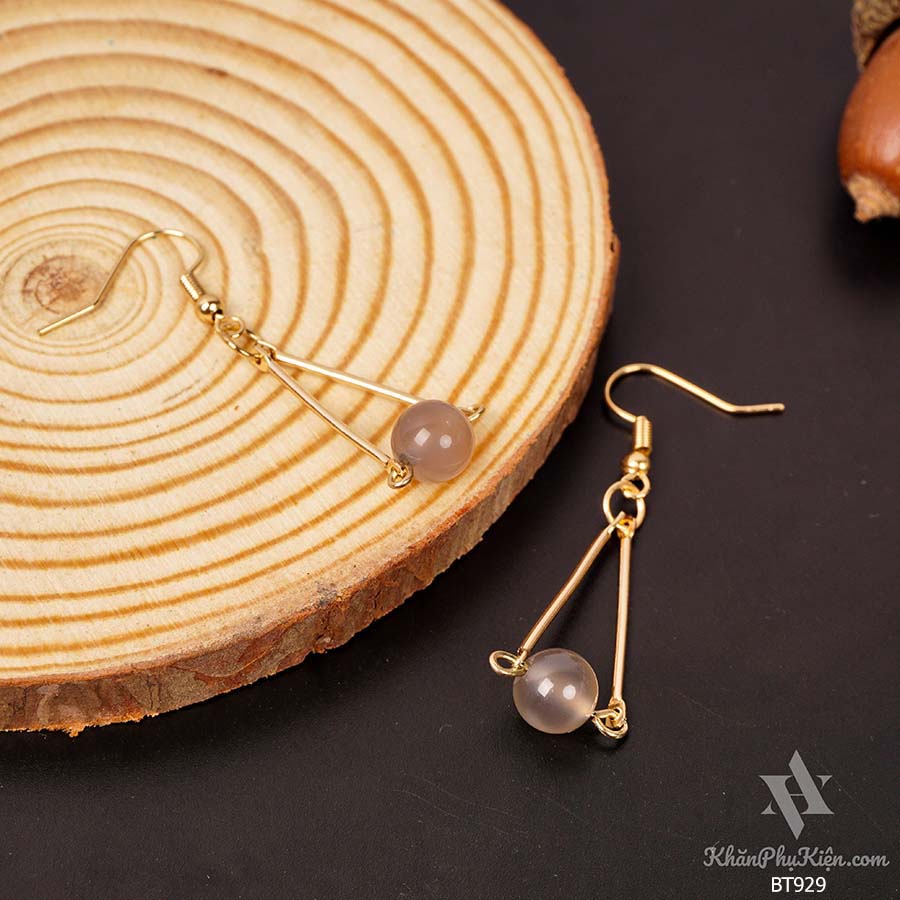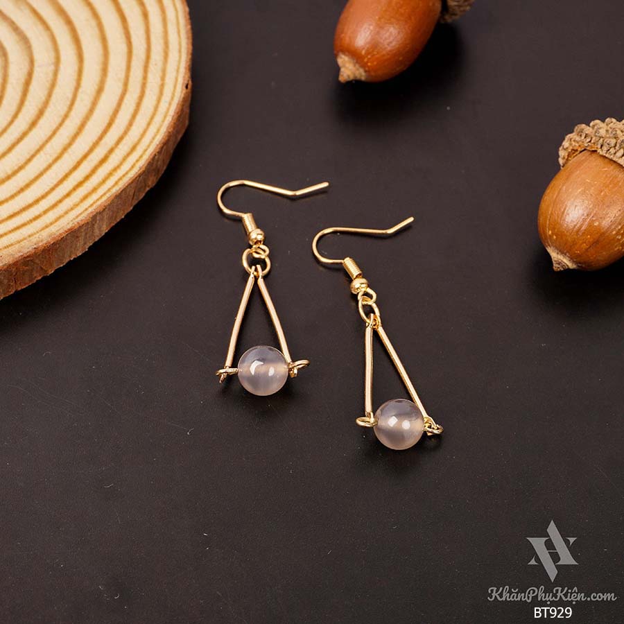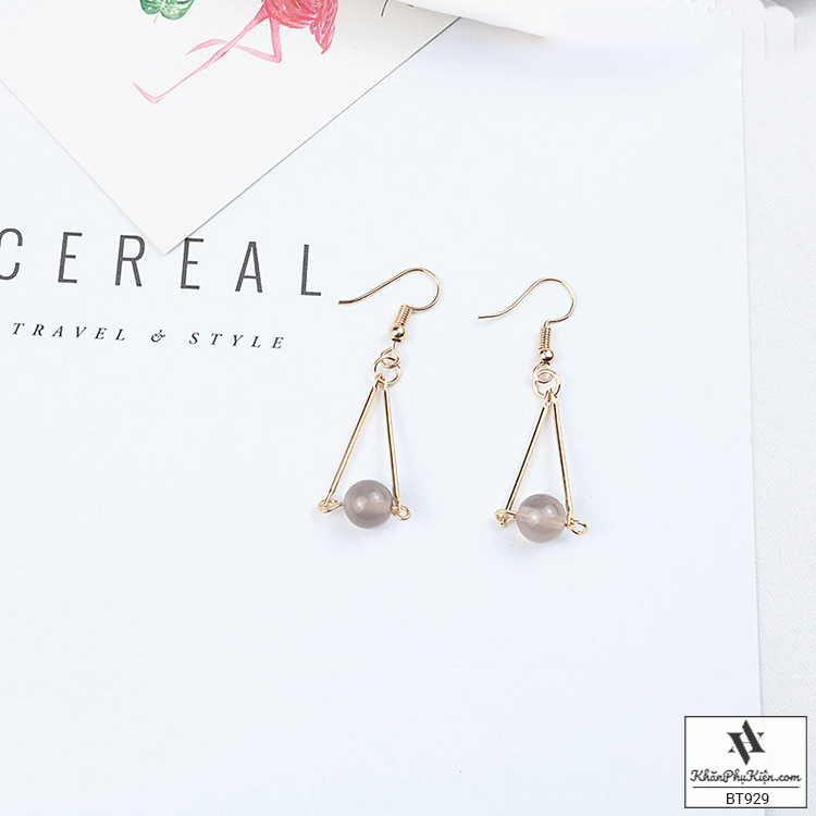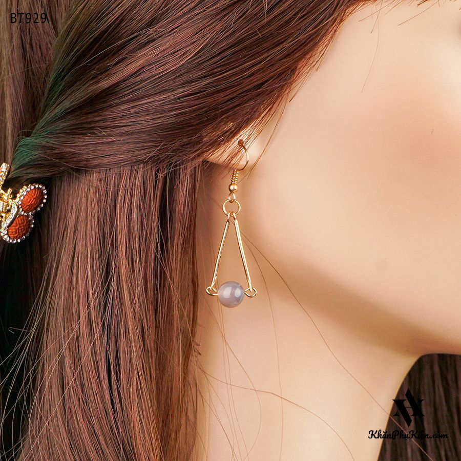Bông Tai Form Dài Hình Tam Giác Phối Hạt Màu Tím Mạ Vàng - Mã BT929