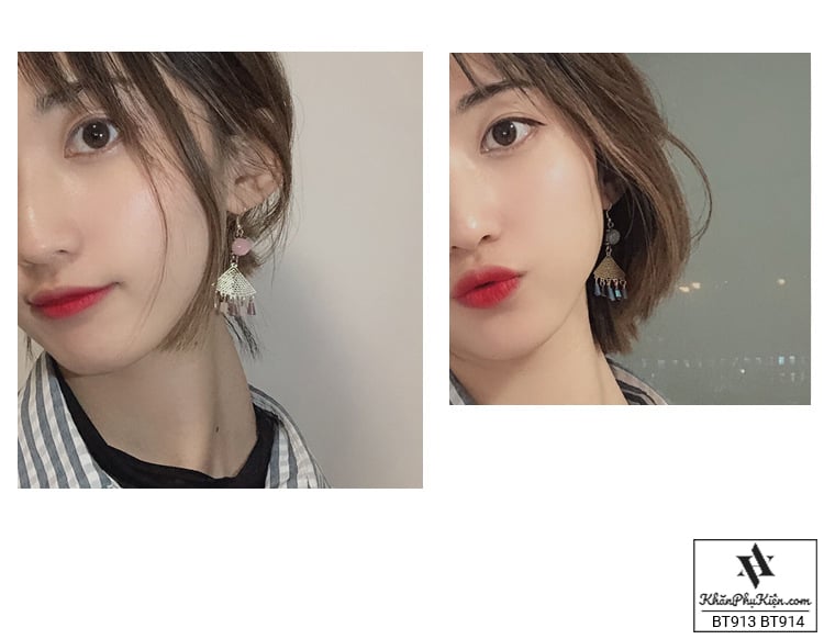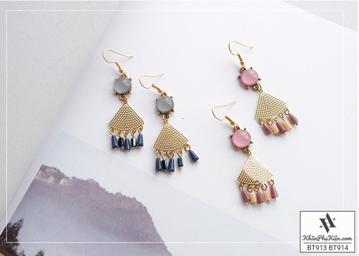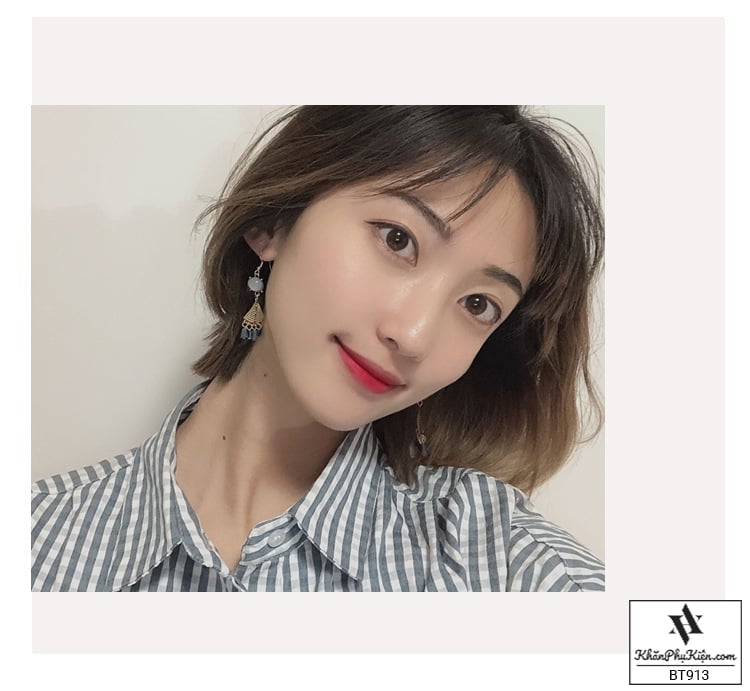 - Đặc điểm: Form dài hình quạt tua rua phối đá xanh ngọc bích