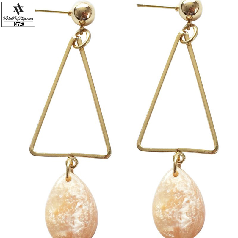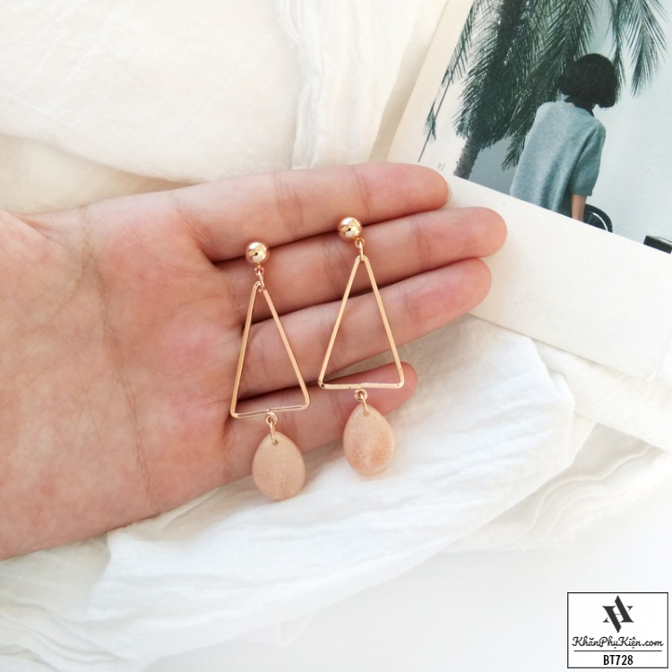 Bông Tai Form Lớn Tâm Giác Đính Đá Màu Cam - Mã BT728