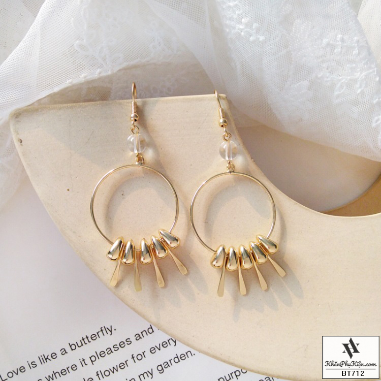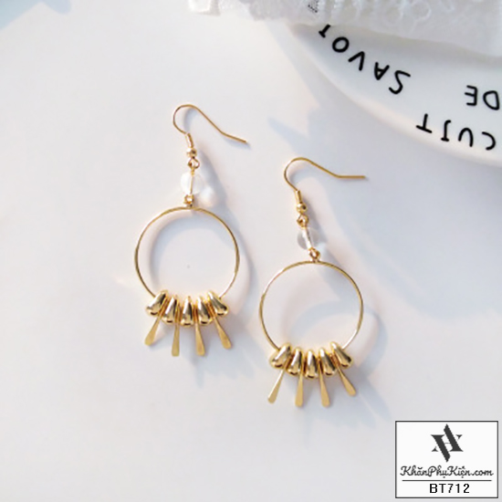Bông Tai Form Lớn Vòng Tròn Phối Đuôi Kim Loại Mạ Vàng - Mã BT712
