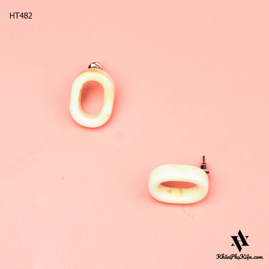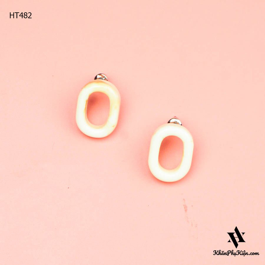 Bông Tai Form Ngắn Đá Trắng Hình Bầu Dục - Mã HT482