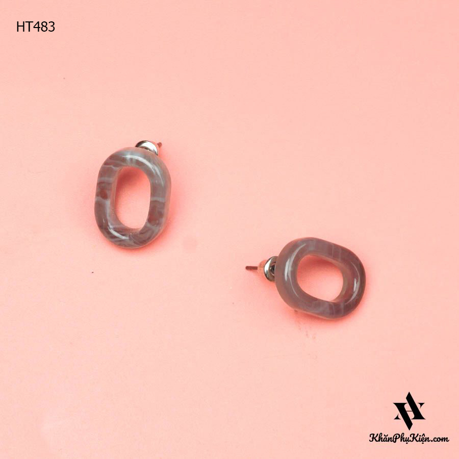 Bông Tai Form Ngắn Đá Xám Hình Bầu Dục - Mã HT483