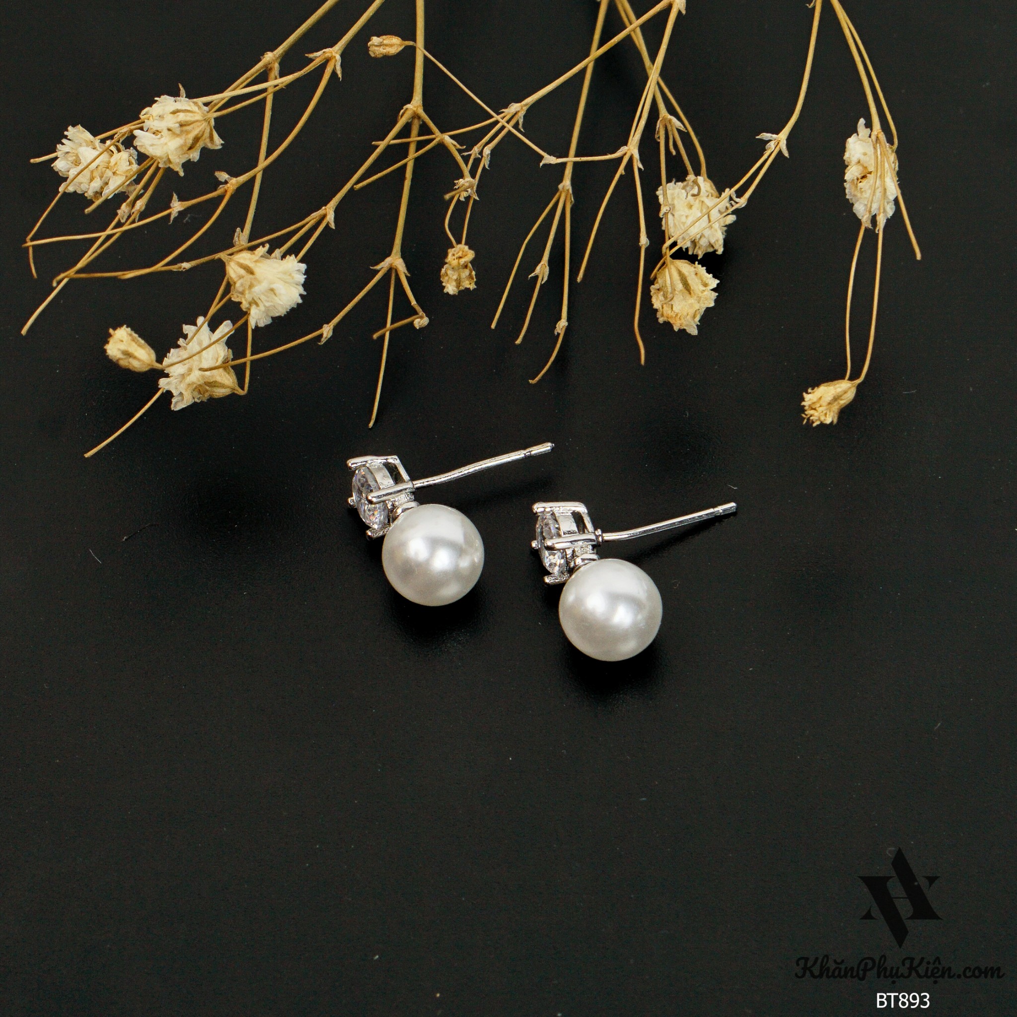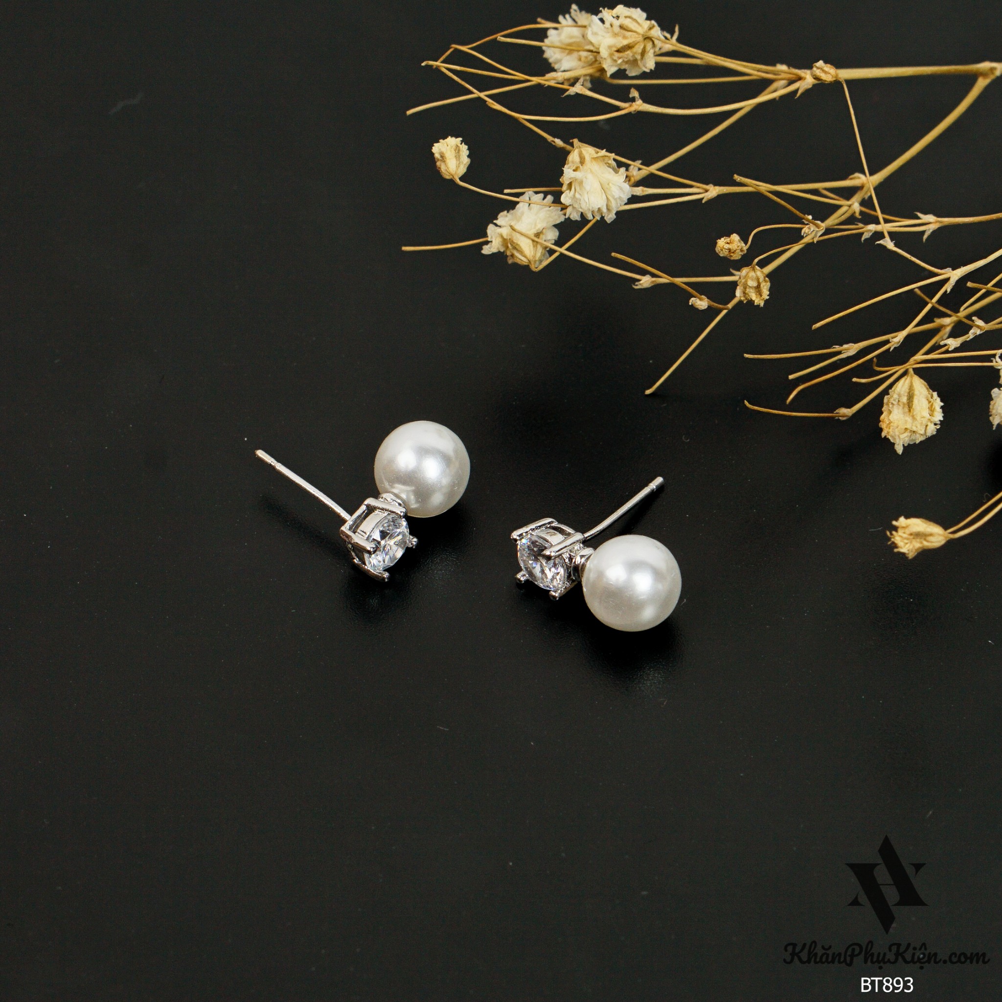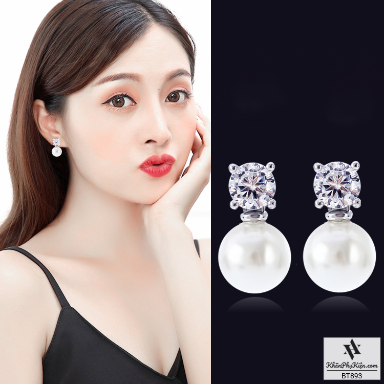 Bông Tai Form Ngắn Phối Hạt Ngọc - Mã BT893