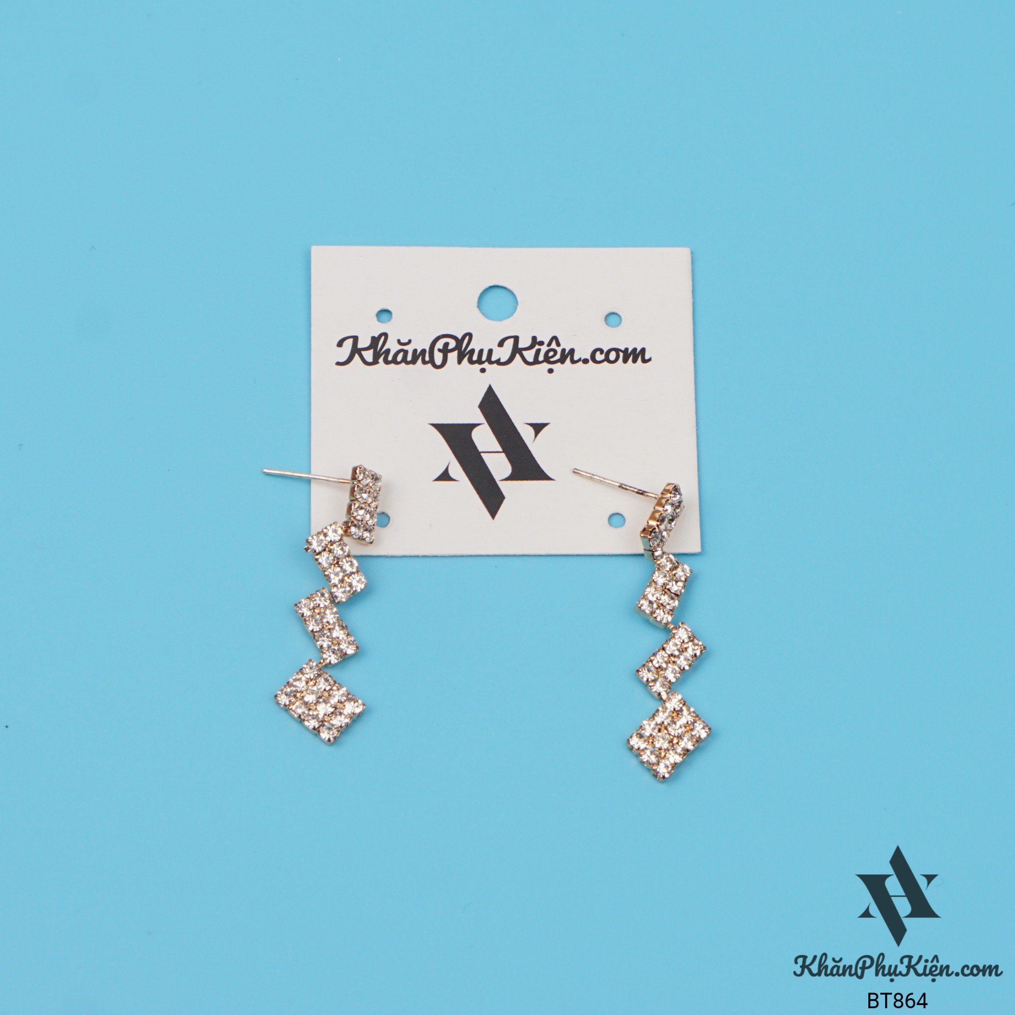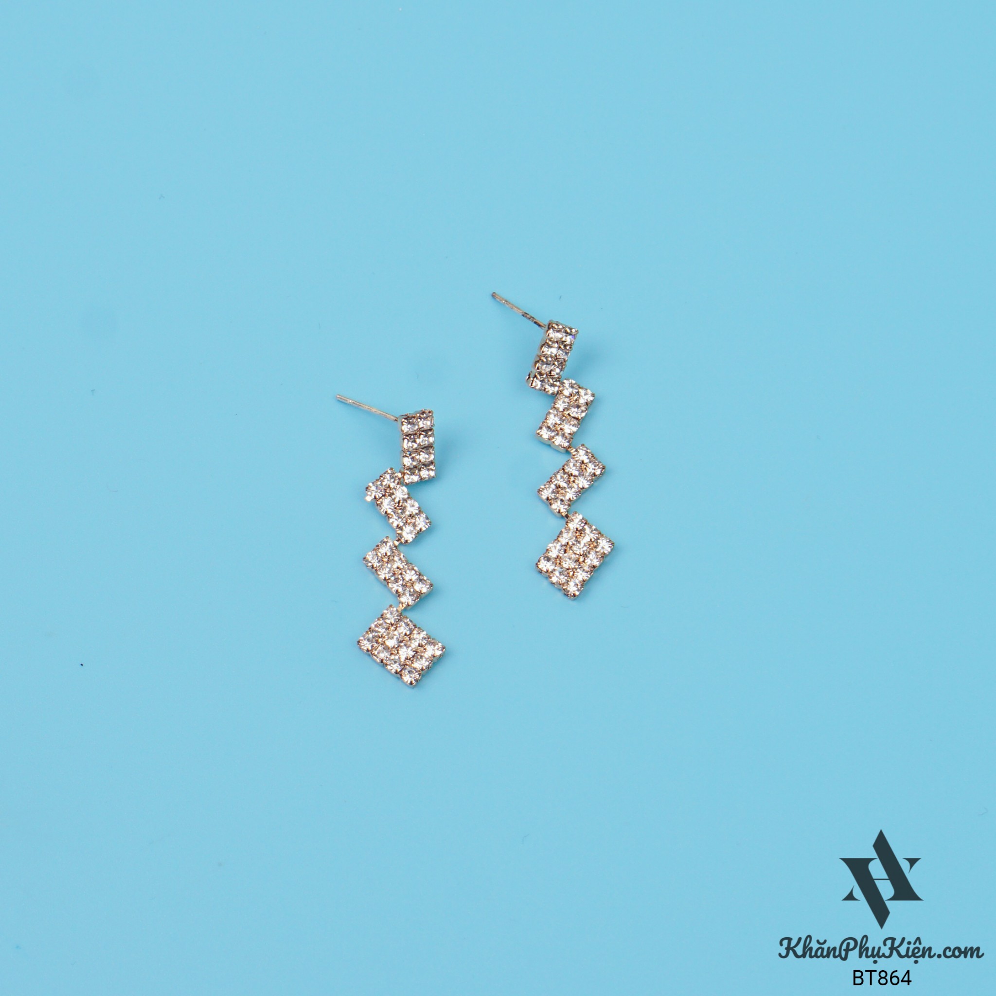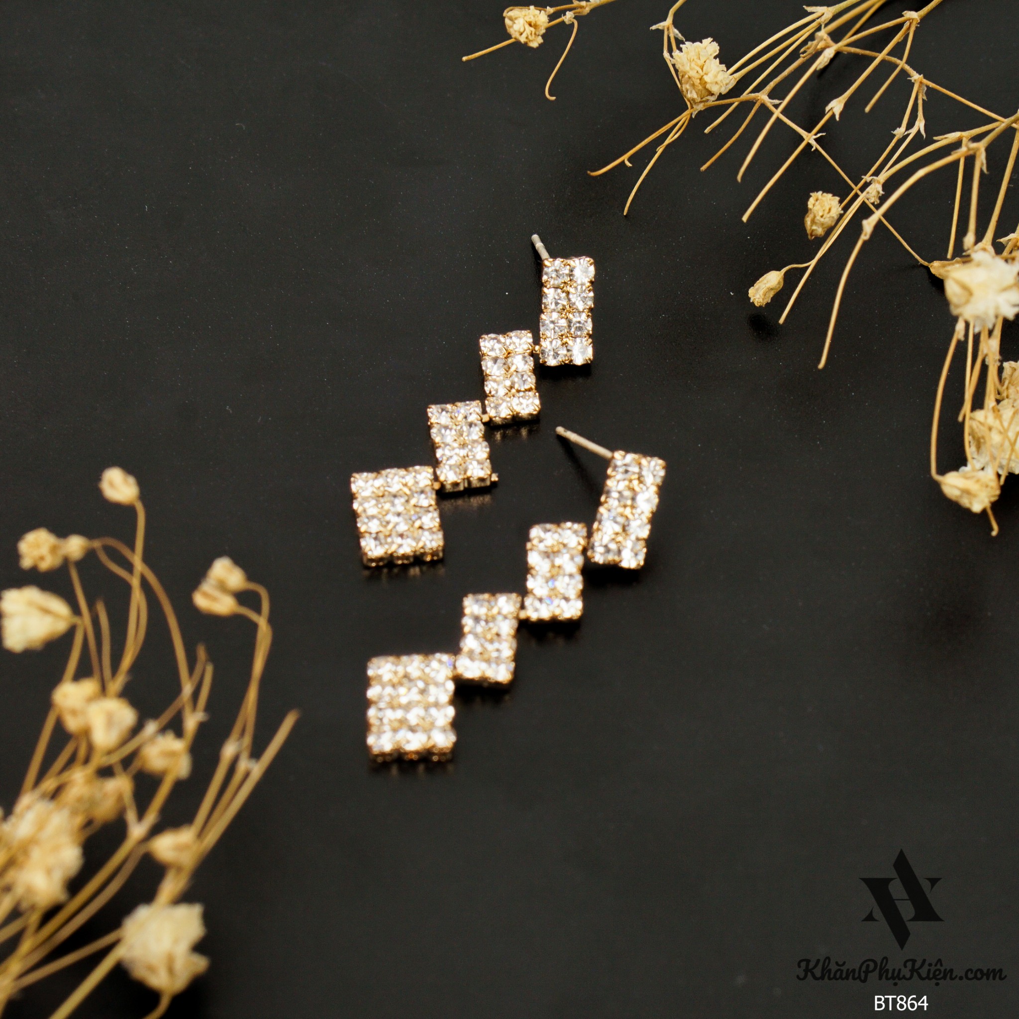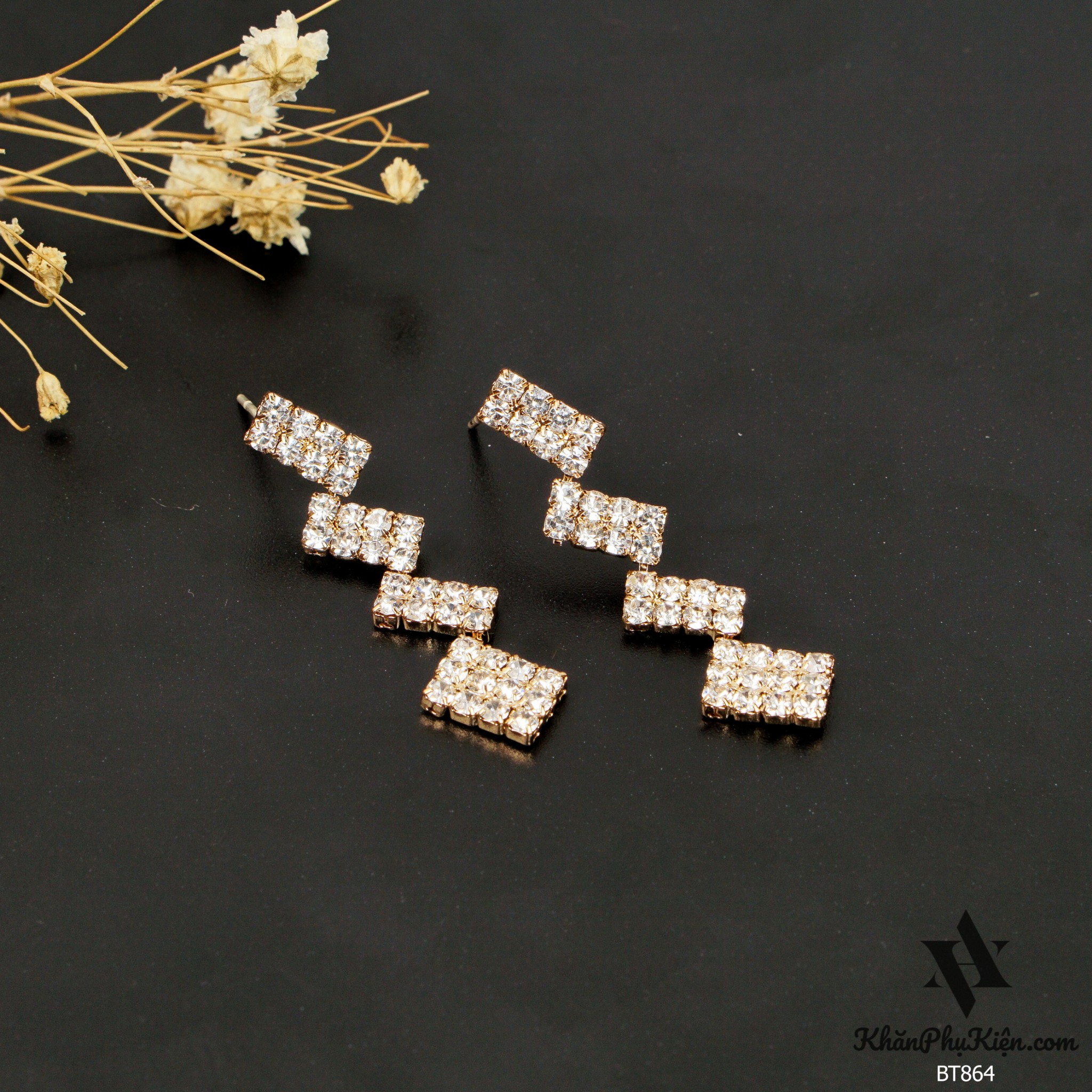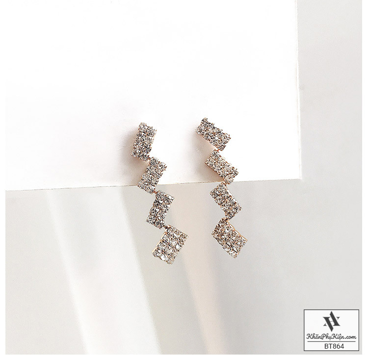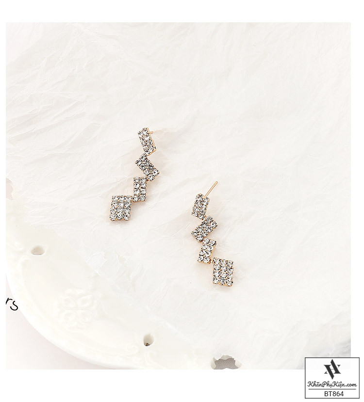 Bông Tai Form Dài Nhiều Hình Chữ Nhật Đính Đá Mạ Vàng - Mã BT864