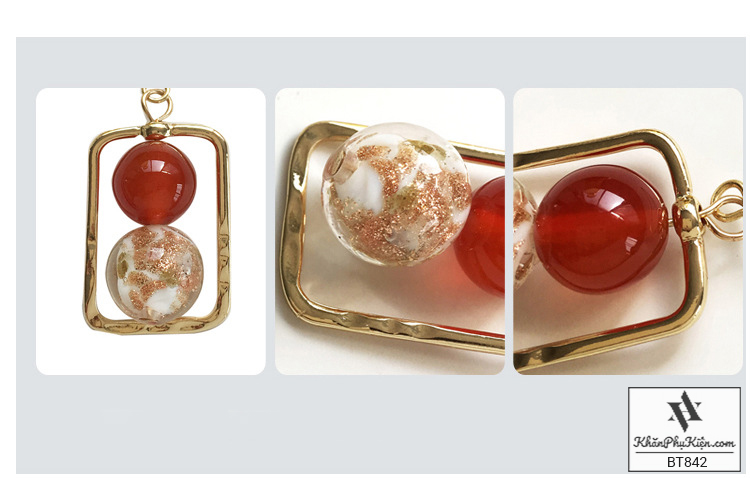 - Đặc điểm: Form lớn hình chữ nhật mạ vàng phối hạt châu đỏ trắng