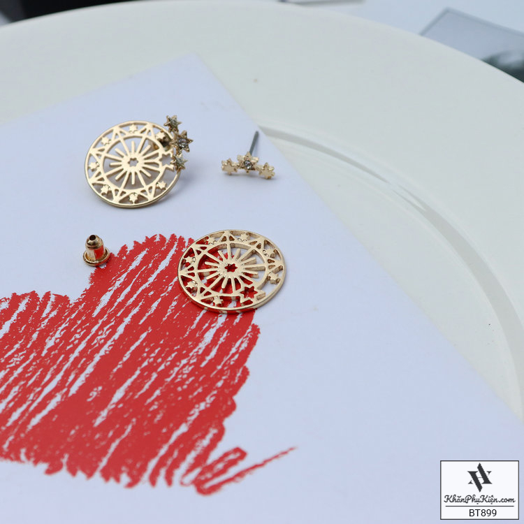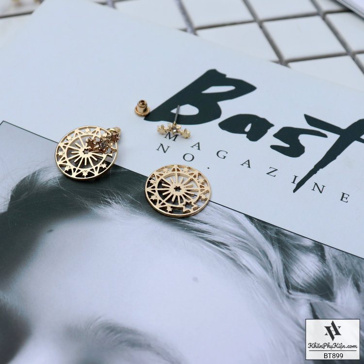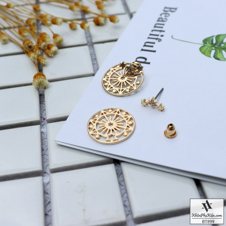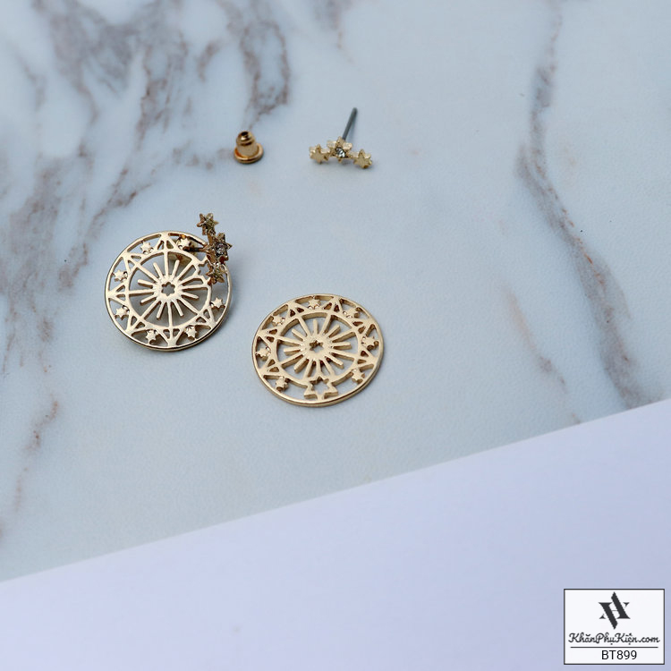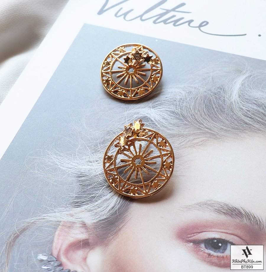 Bông Tai Form Ngắn Hình Tròn Mạ Vàng Họa Tiết Viền Sao - Mã BT899