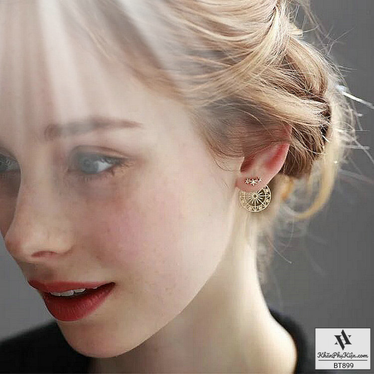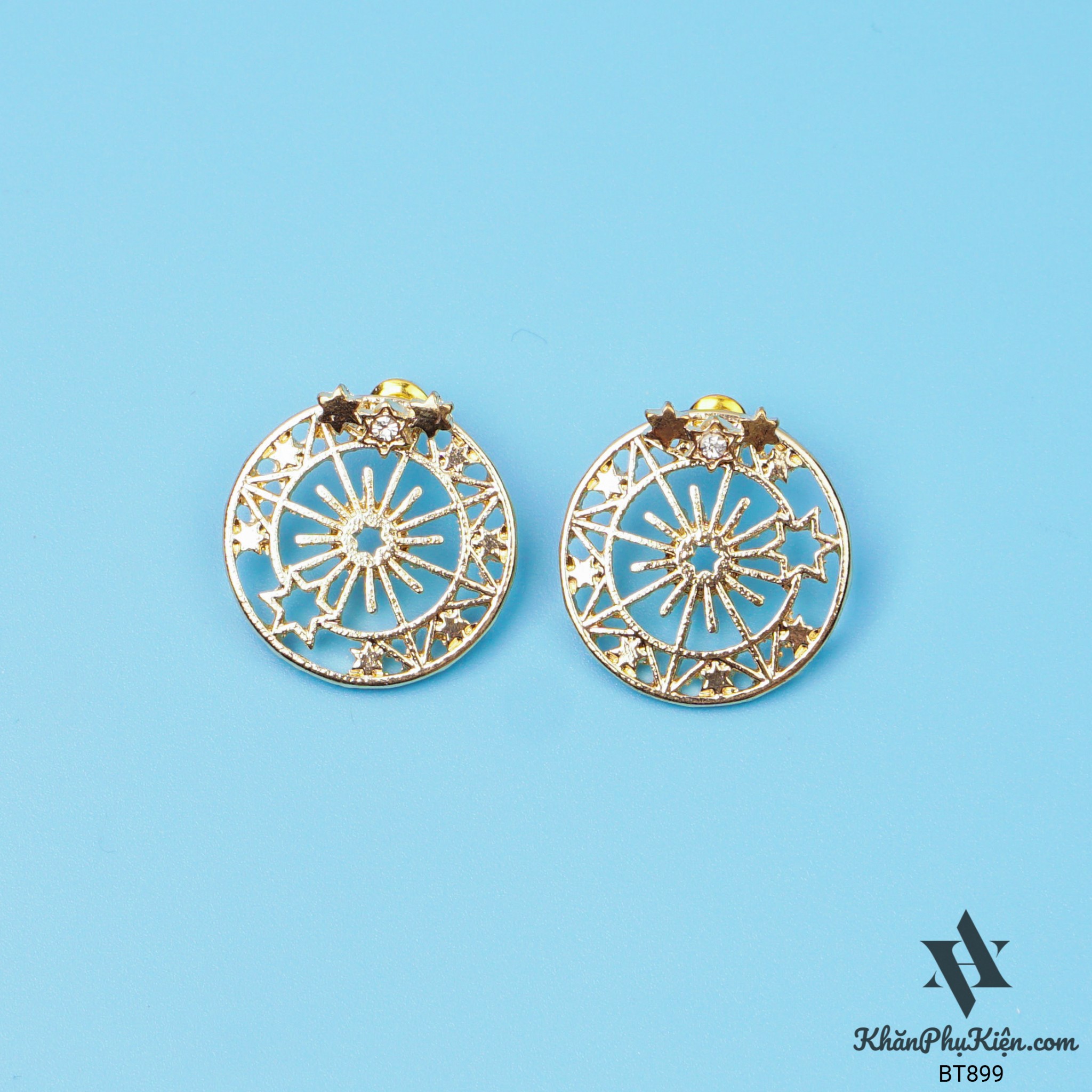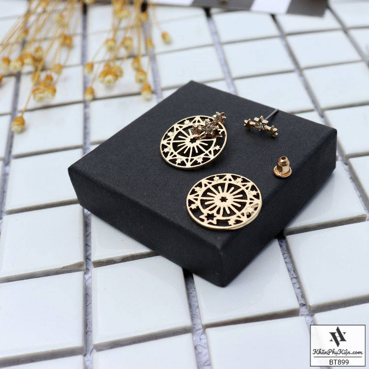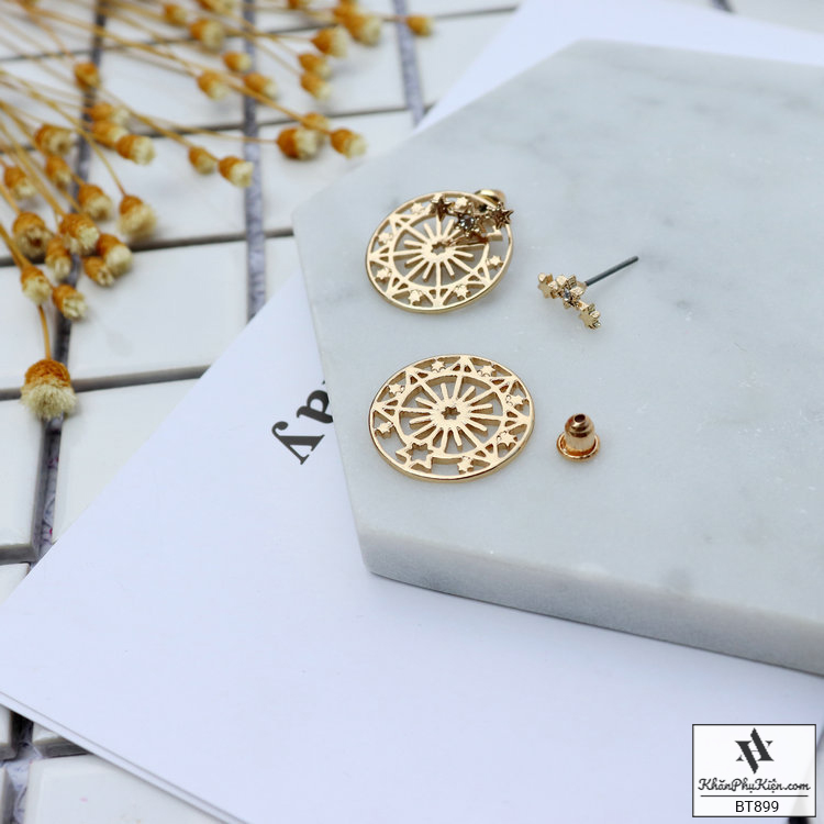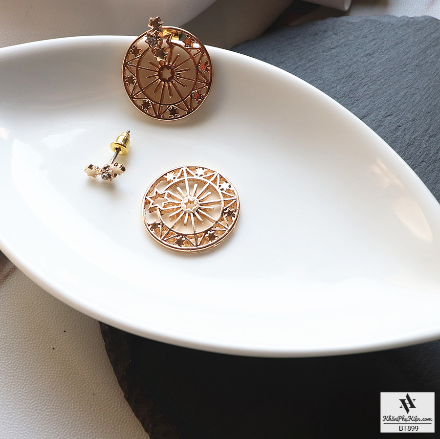 Bông Tai Form Ngắn Hình Tròn Mạ Vàng Họa Tiết Viền Sao - Mã BT899