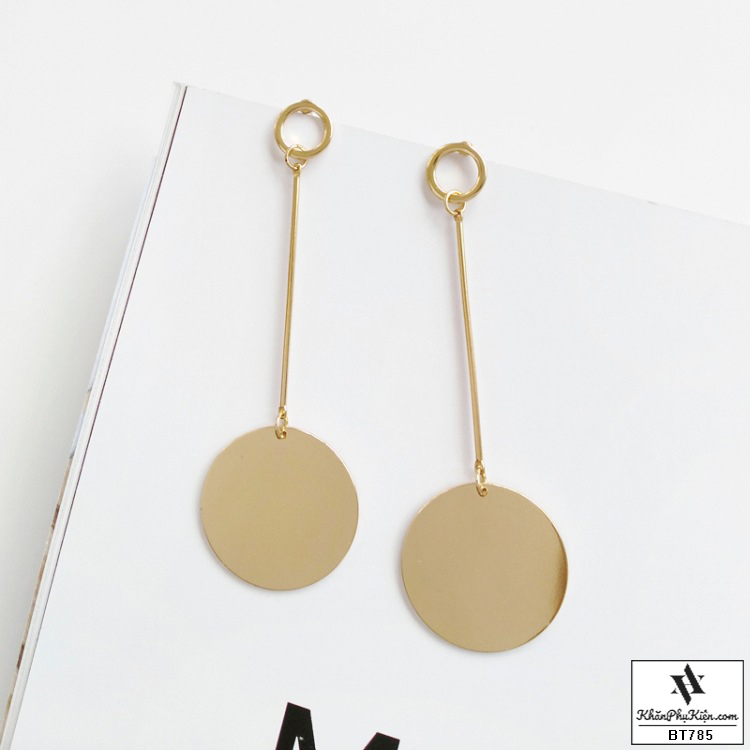 - Đặc điểm: Form Dài Thanh Mảnh kèm Hình Tròn Kim Loại Mạ Vàng