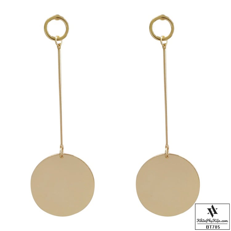 Bông Tai Form Dài Hình Tròn Vàng Phối Kim Loại Mạ Vàng - Mã BT785