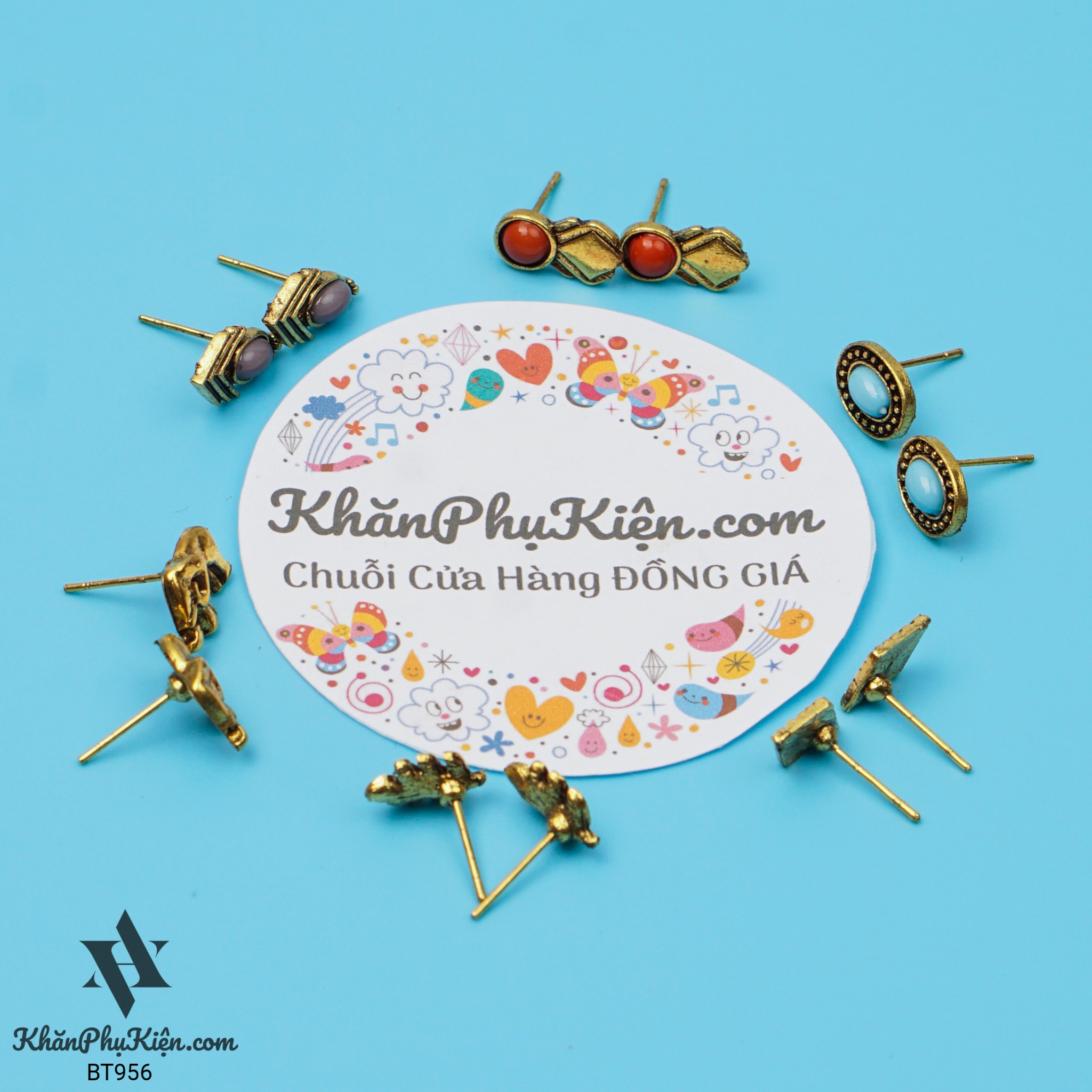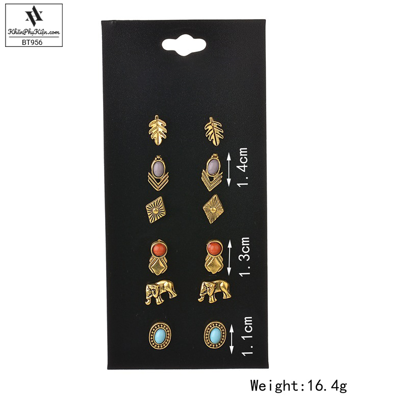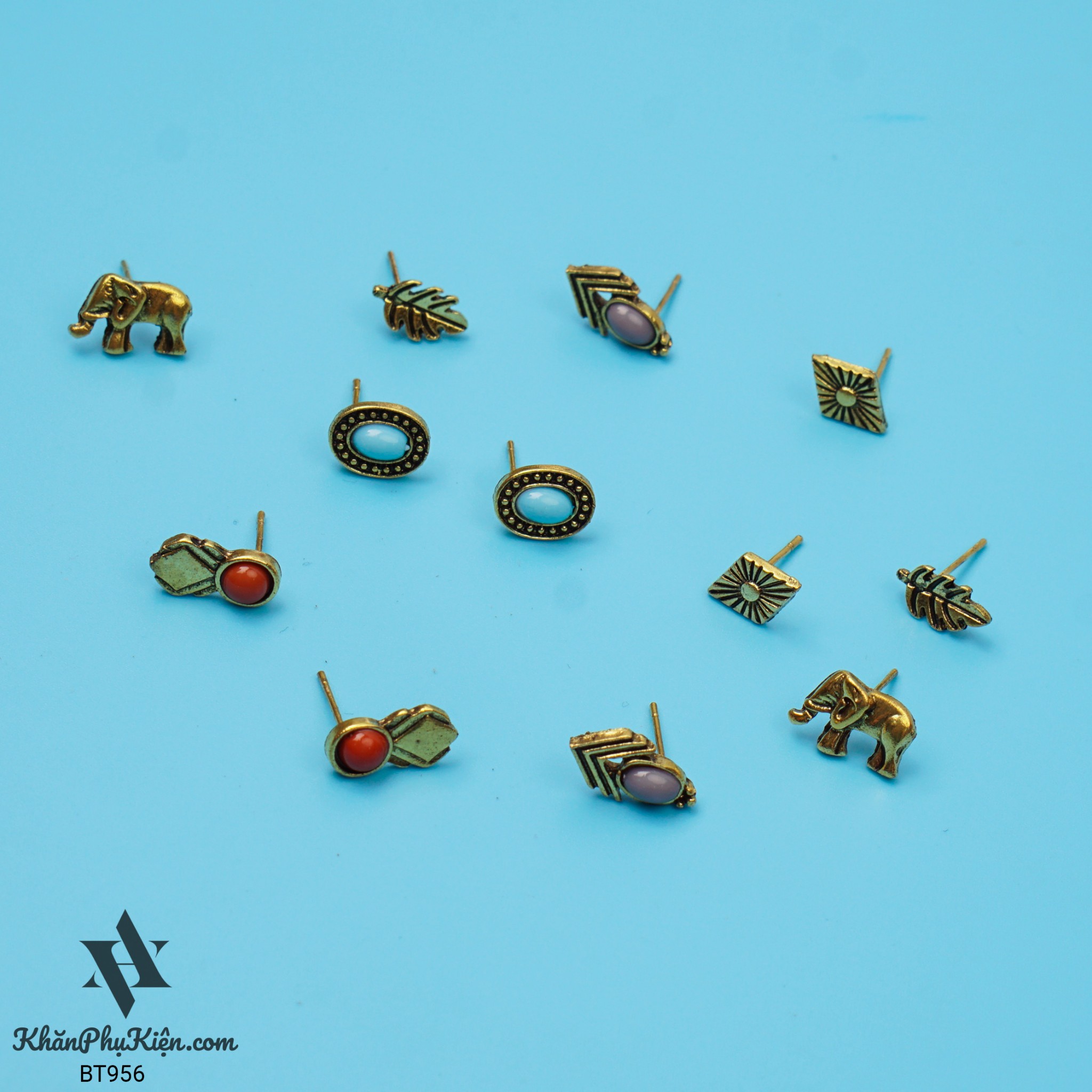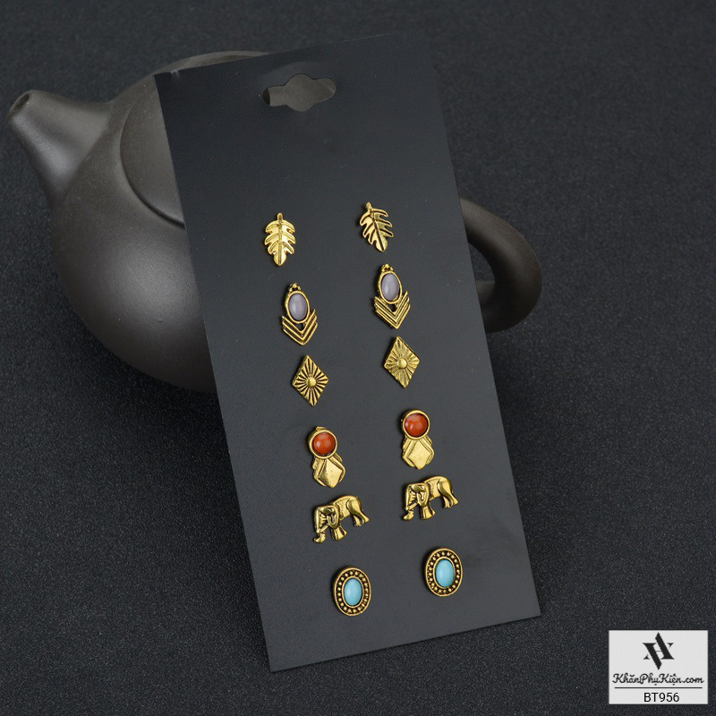 Bông Tai Set 6 Đôi Hình Lá, Con Voi Mạ Vàng - Mã BT956