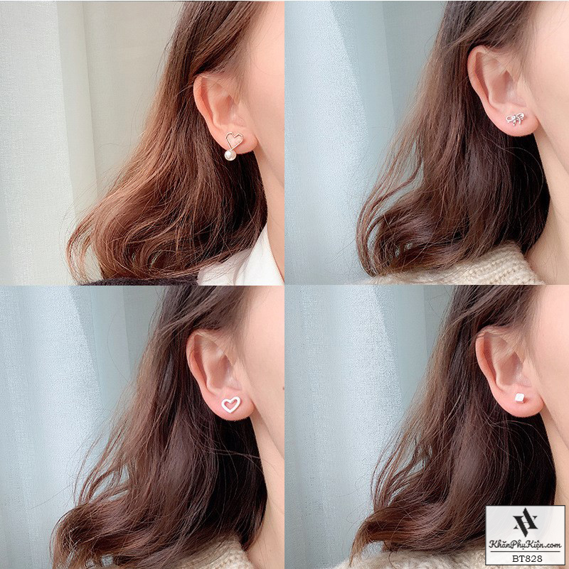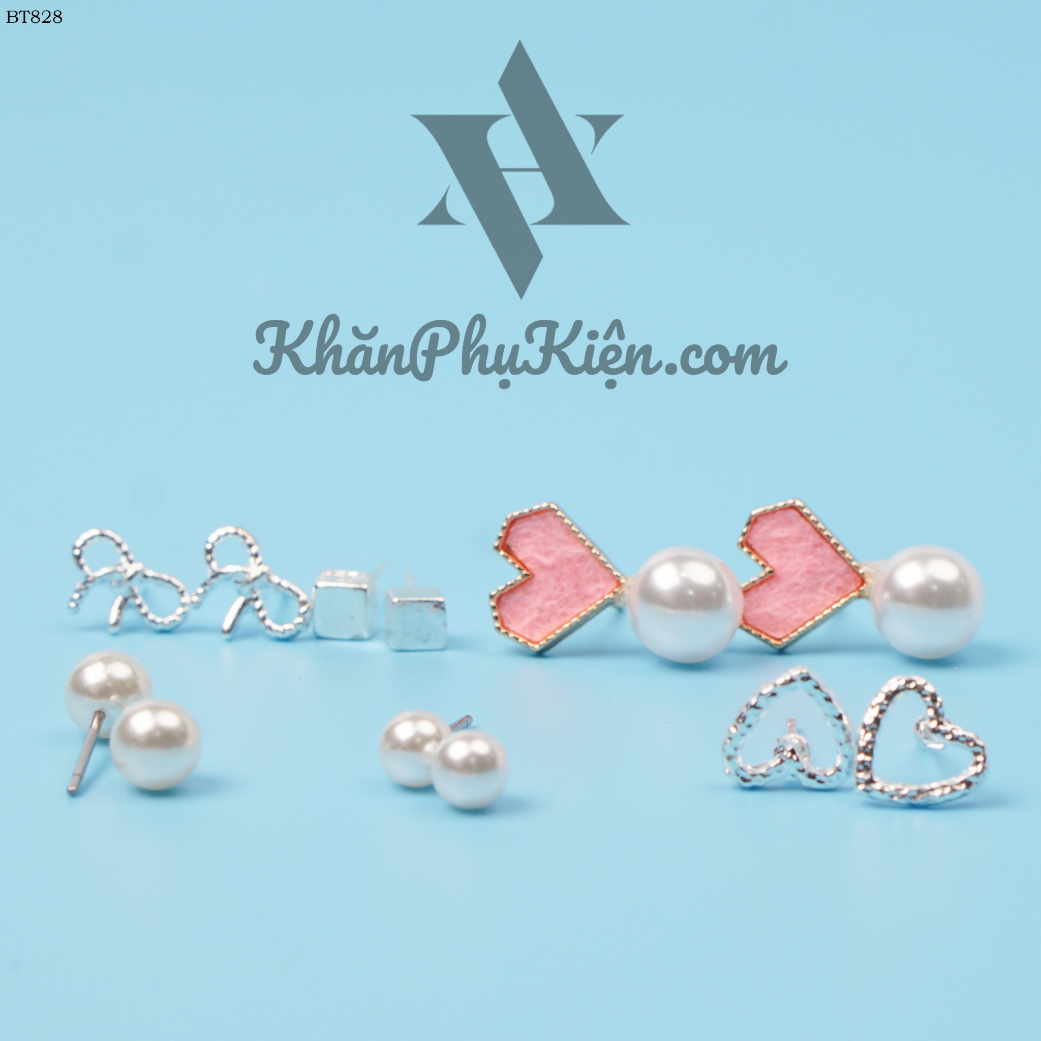 Bông Tai Set 6 Đôi Trong Tuần Trái Tim Đuôi Ngọc Trai Màu Hồng - Mã BT828