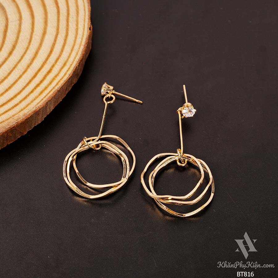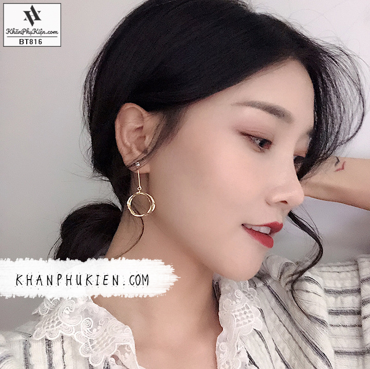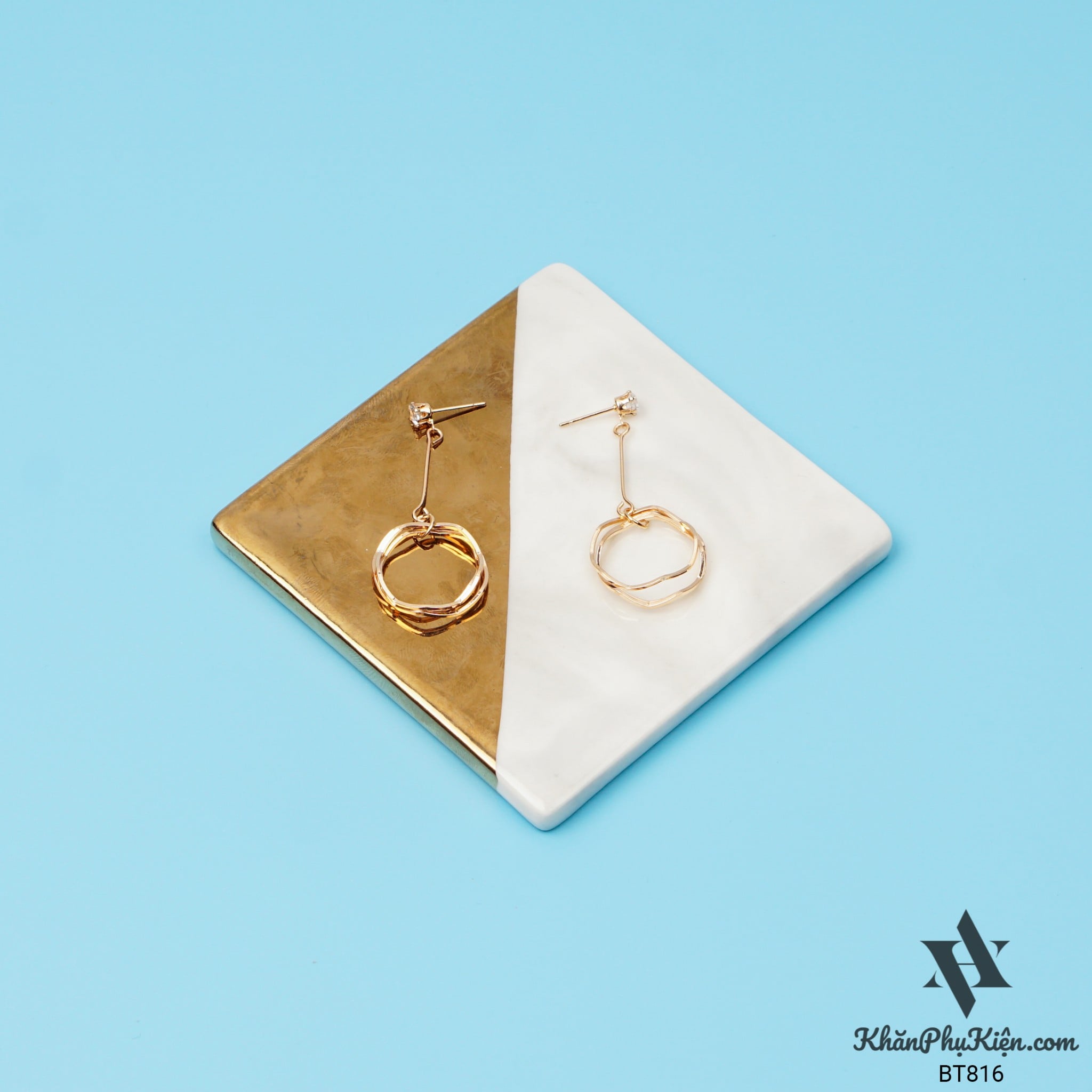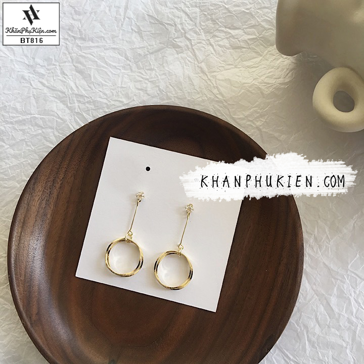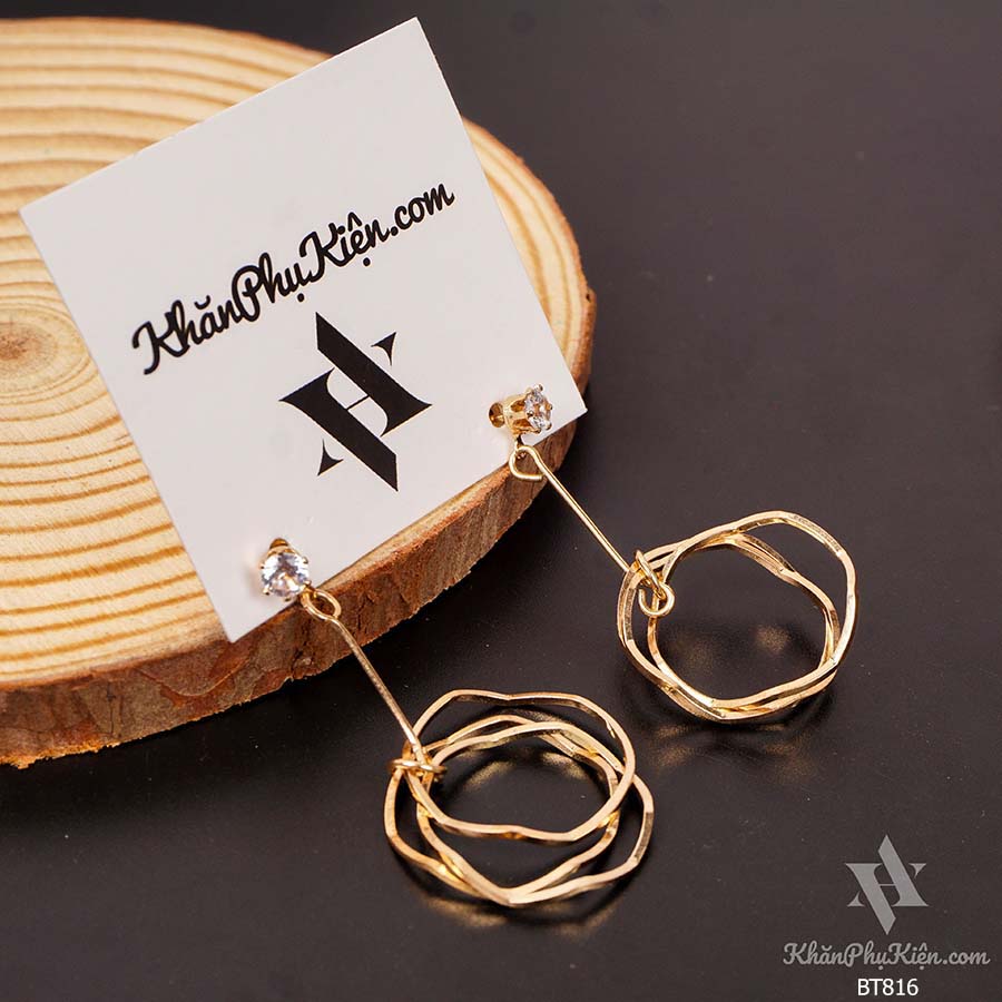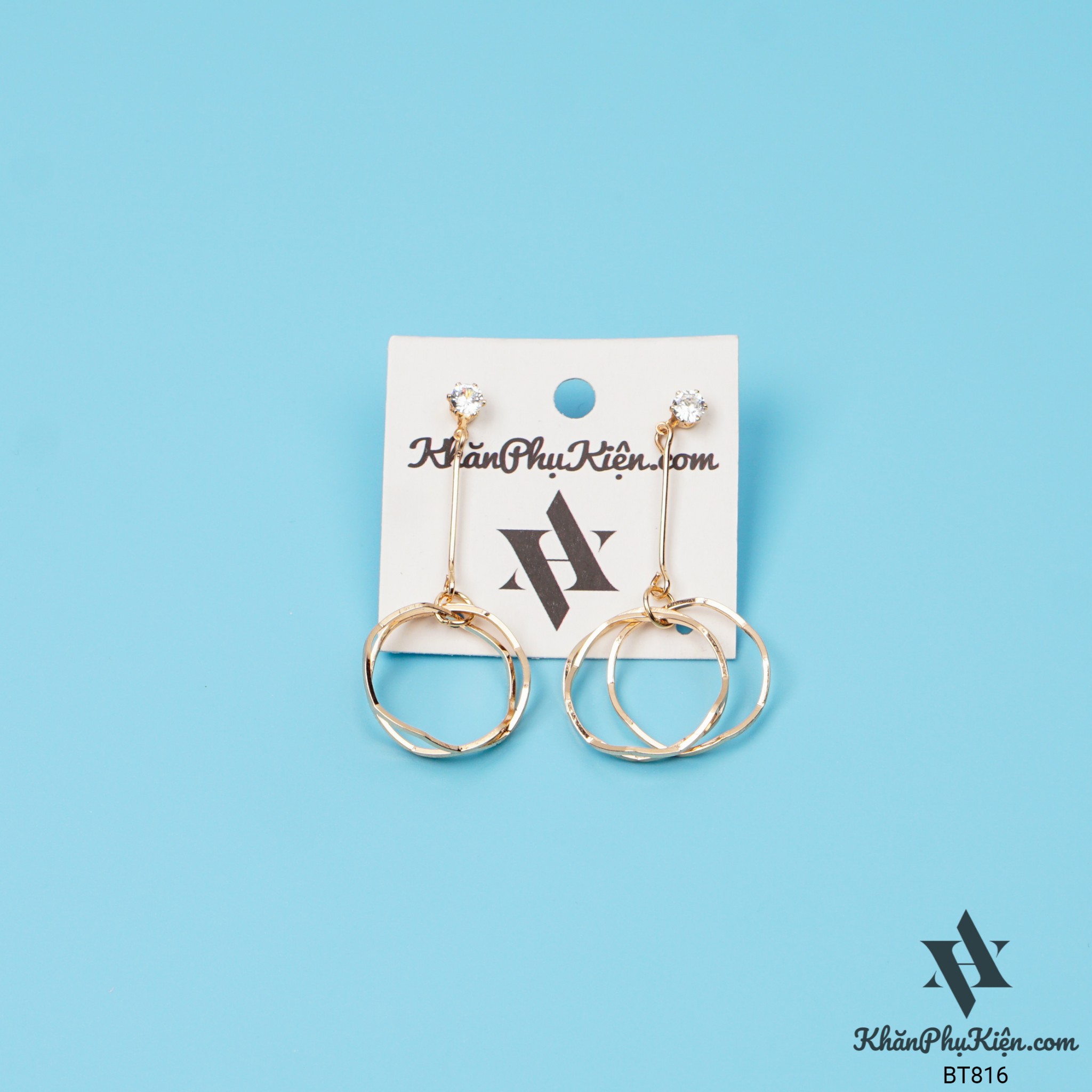 Bông Tai Form Dài Vòng Tròn Phối Kim Loại Mạ Vàng - Mã BT816