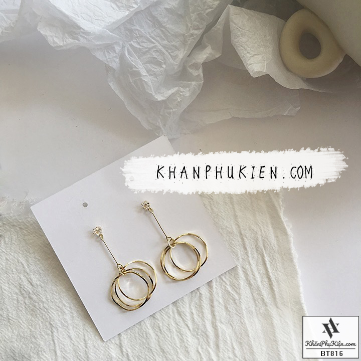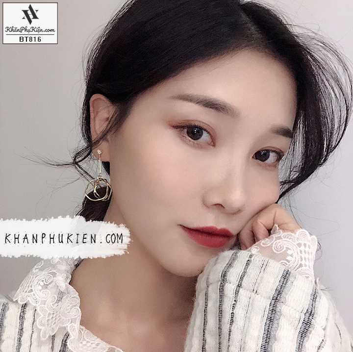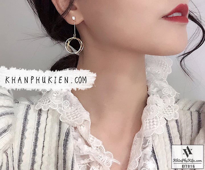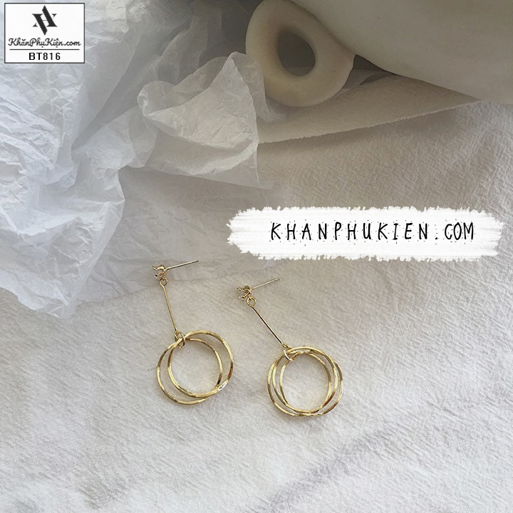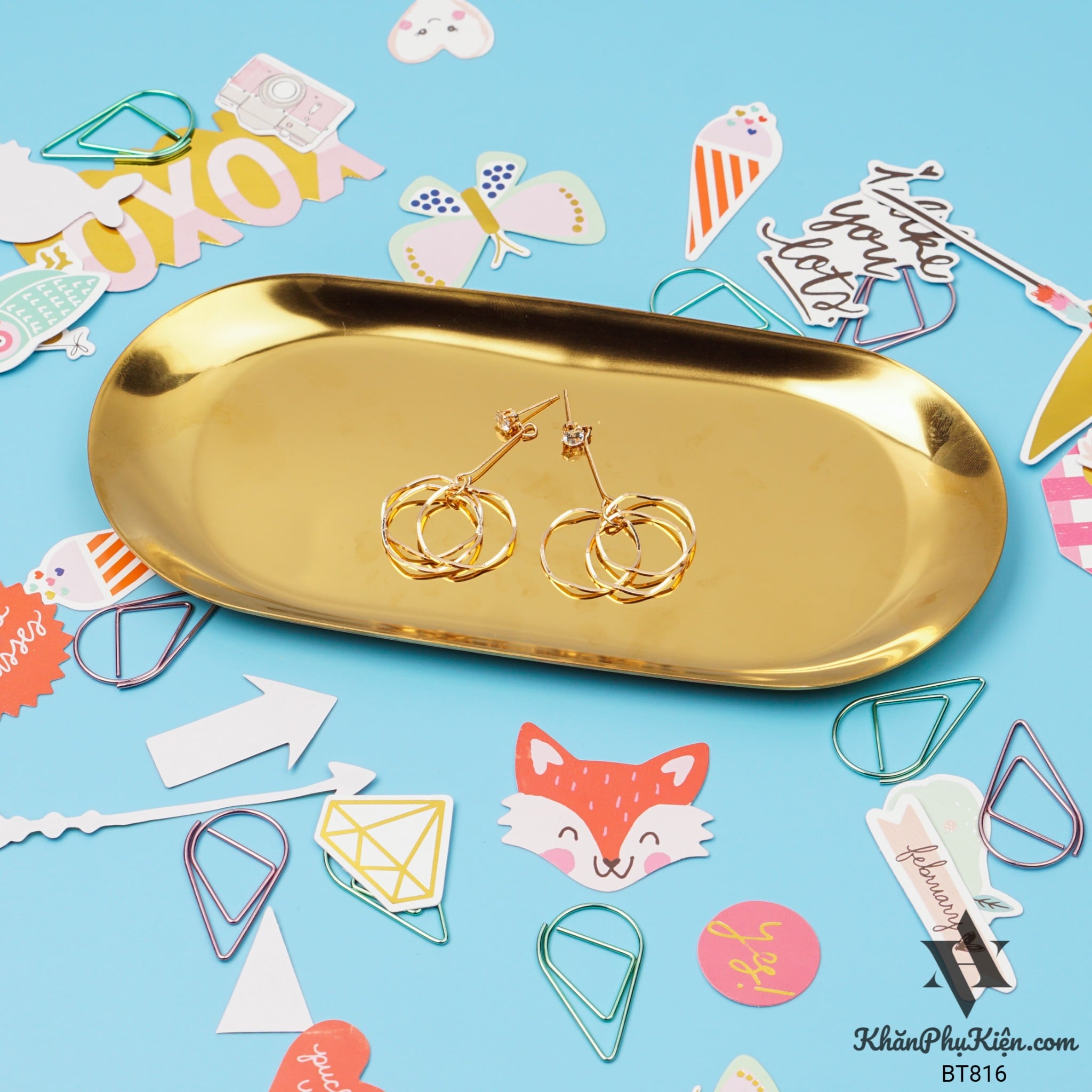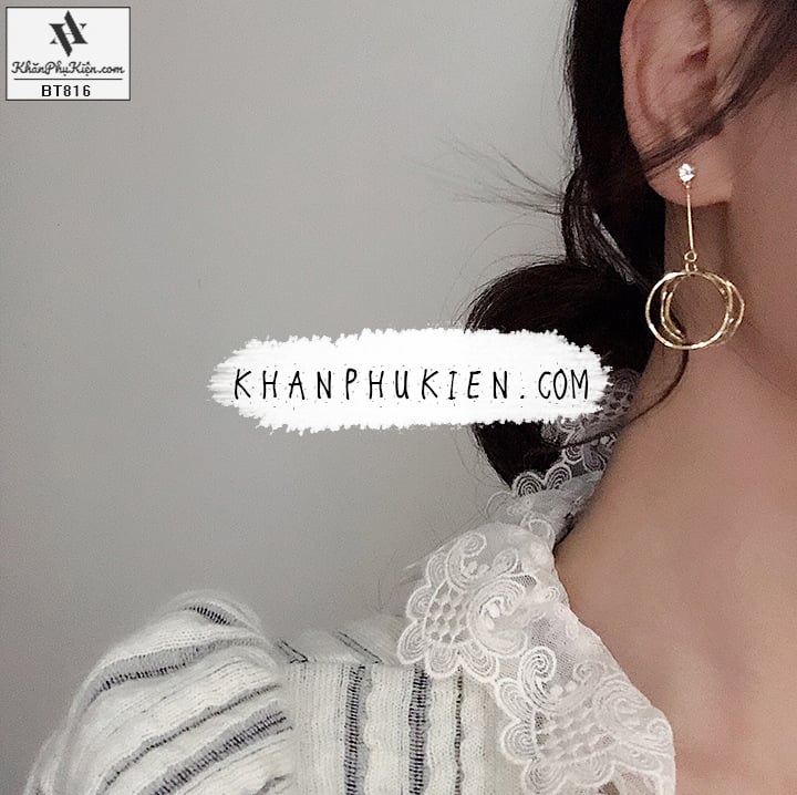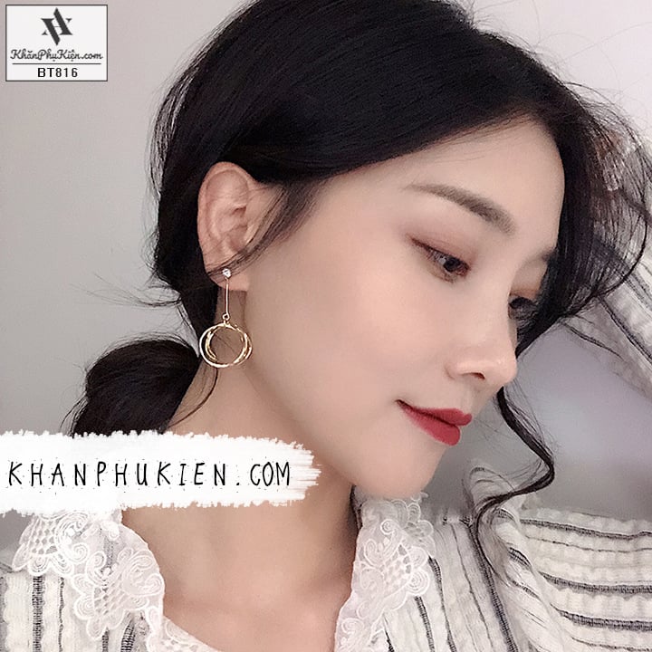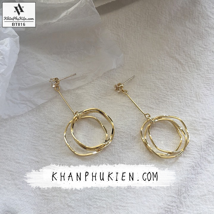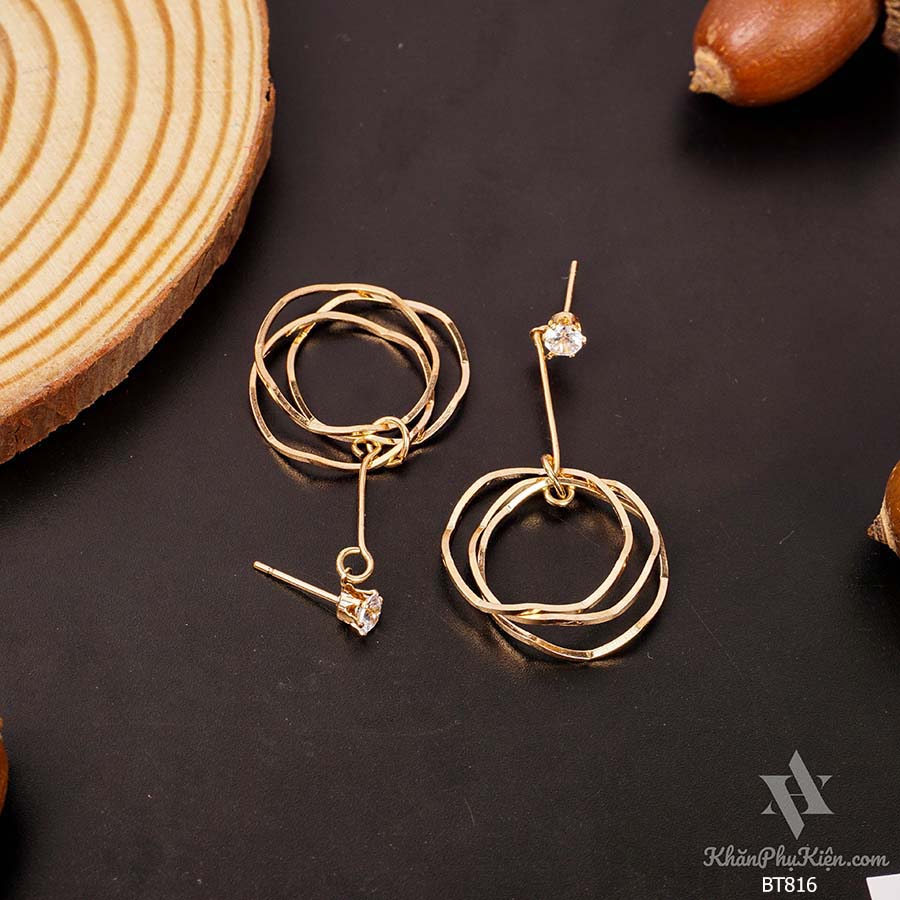 Bông Tai Form Dài Vòng Tròn Phối Kim Loại Mạ Vàng - Mã BT816
