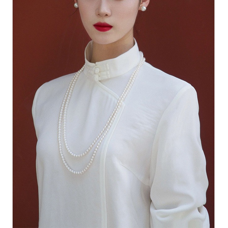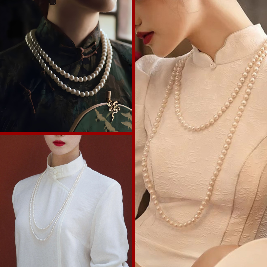 Dây chuyền nữ ngọc trai nhân tạo Tết 2025 vòng cổ hạt trai phụ kiện trang sức tết phối yếm bà ba - 150cm
