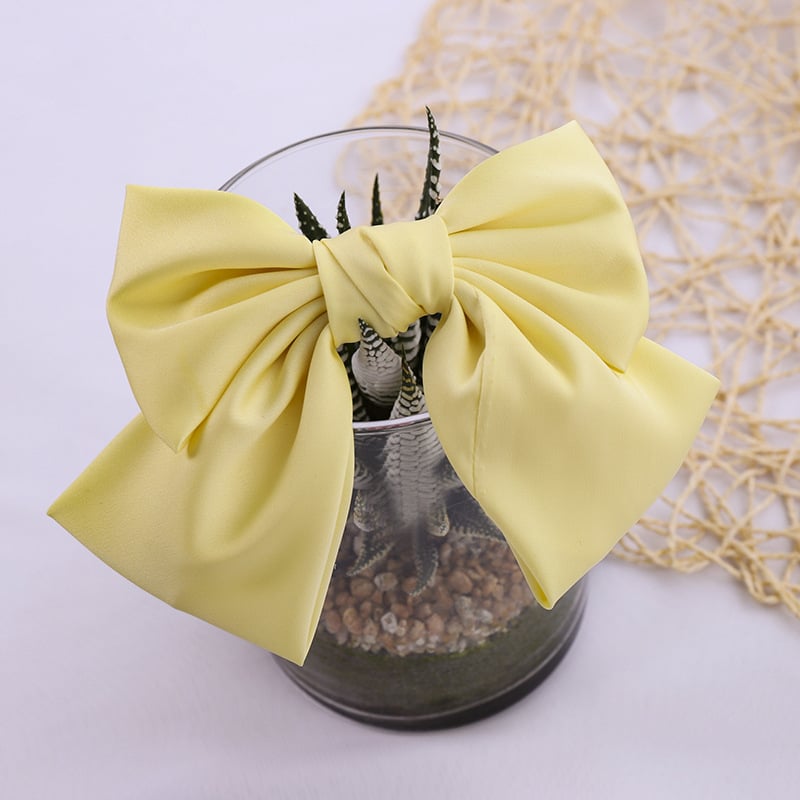 Kẹp (Cặp) Tóc Đính Nơ Lụa Satin Màu Vàng Nhạt Trơn - Mã KT298