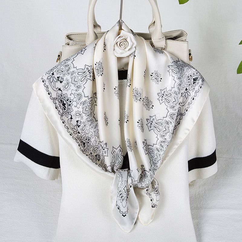 Khăn Bandana Lụa Vuông Họa Tiết Tế Bào Phong Cách Âu Mỹ Màu Trắng - Mã KL371