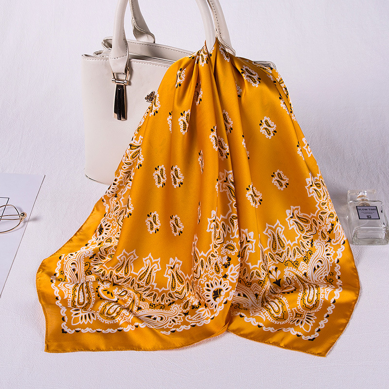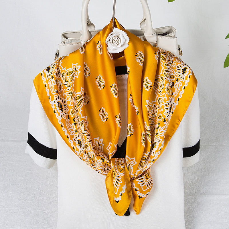 Khăn Bandana Lụa Vuông Họa Tiết Tế Bào Phong Cách Âu Mỹ Màu Vàng Gold - Mã KL373
