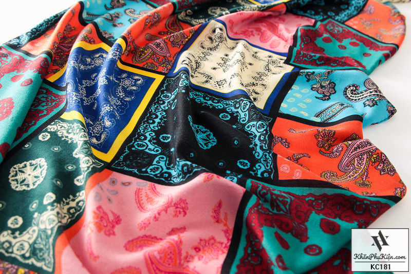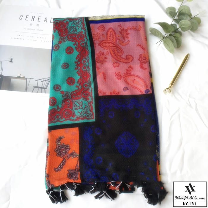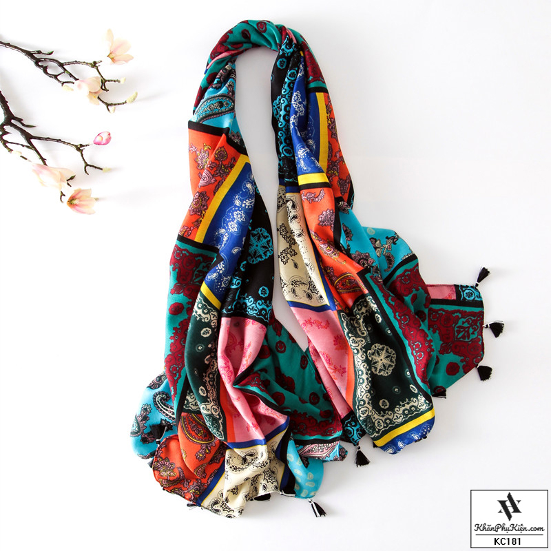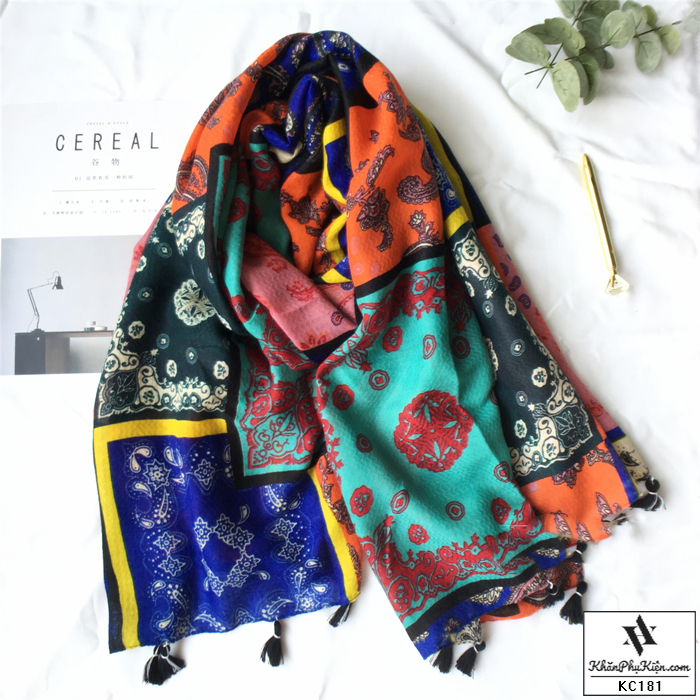 Khăn Choàng Cổ Cotton Họa Tiết Ô Vuông Nhiều Màu Cam, Xanh Dương Đậm - Cotton Viscose - 180x90cm - Mã KC181