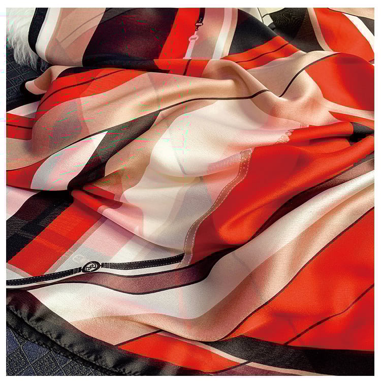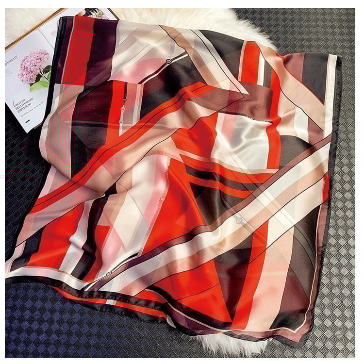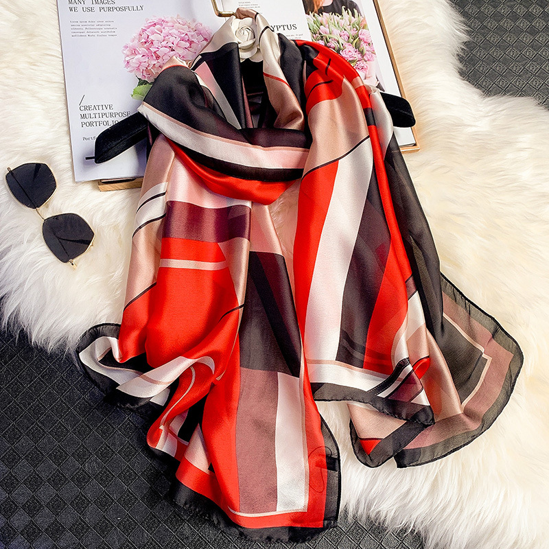 Khăn Choàng Cổ Lụa Họa Tiết Sọc Vuông Phối Nhiều Màu Nền Đỏ - Lụa Silk - 180x90cm - Mã KS170