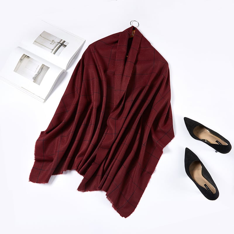 Khăn Len Choàng Cổ Cashmere Sọc Đen Nền Màu Đỏ Đô- Mã KC333