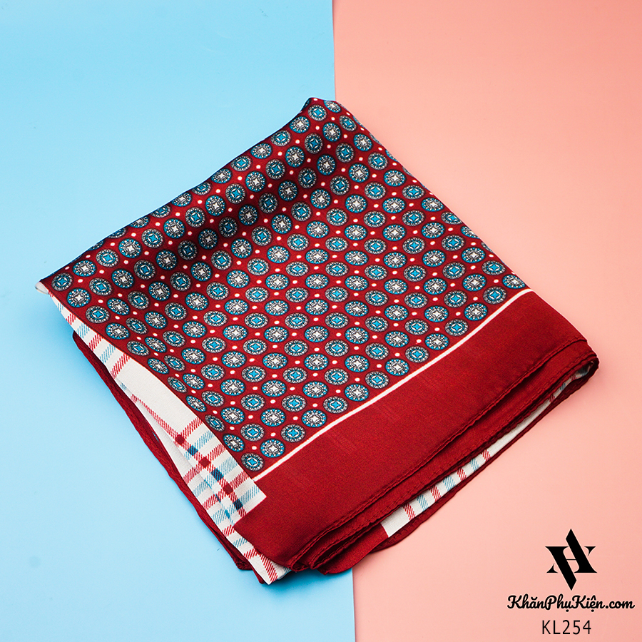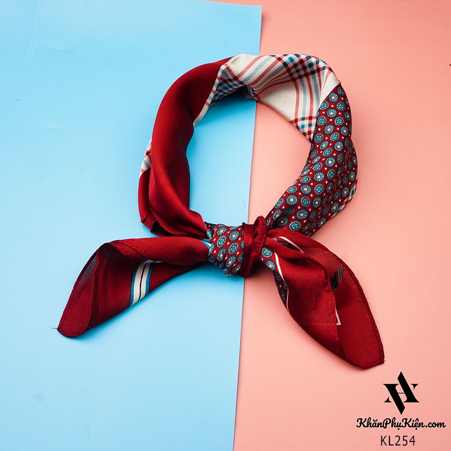 Khăn Lụa Vuông Họa Tiết Chấm Bi Thổ Cẩm Phối Sọc, Màu Xám Viền Đỏ - Mã KL264