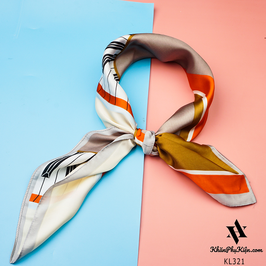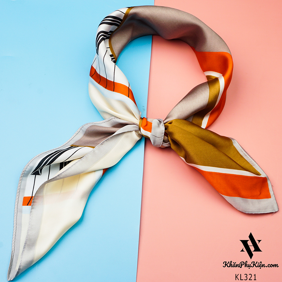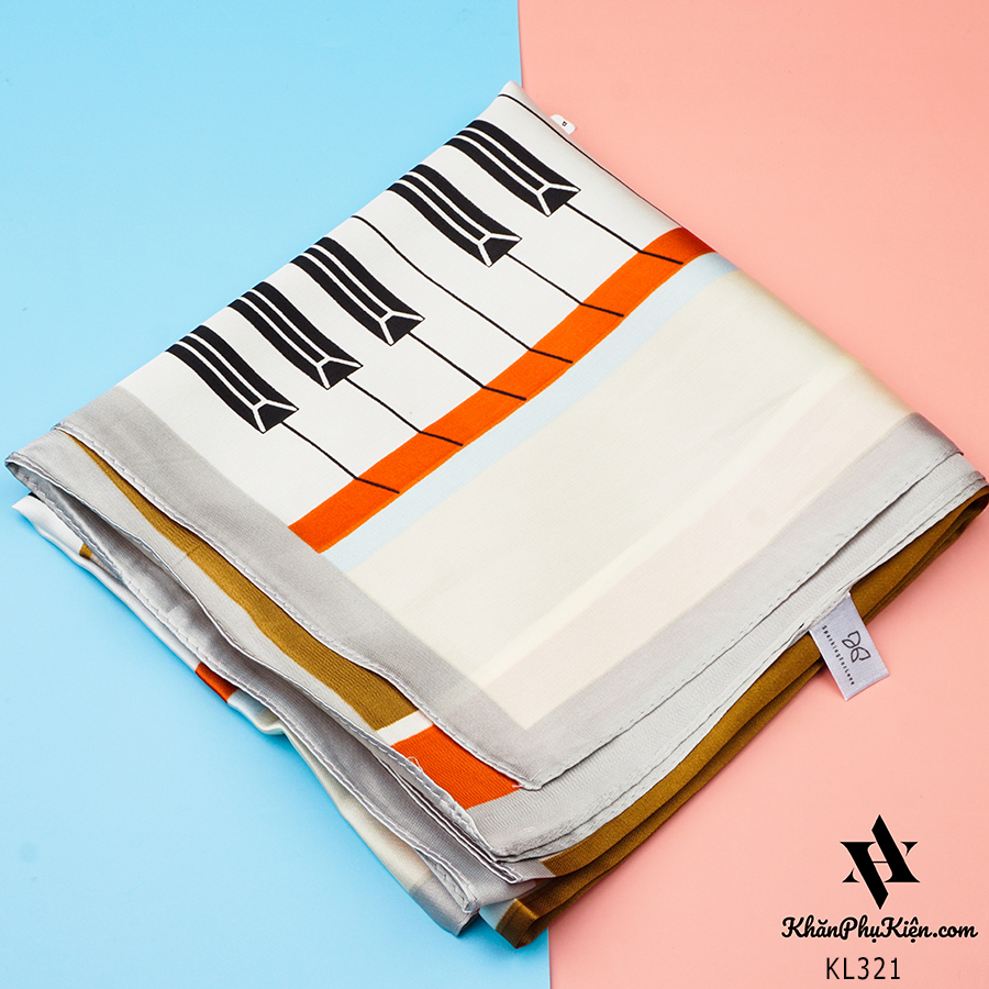 Khăn Lụa Vuông Họa Tiết Phím Đàn Piano Màu Vàng Phối Cam - Mã KL321