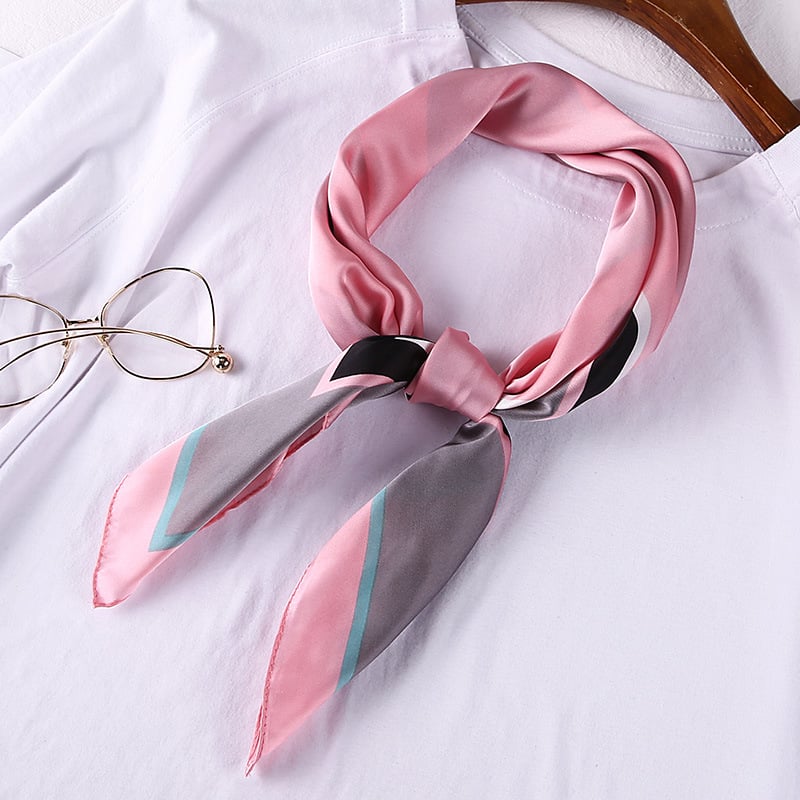 Khăn Lụa Vuông Họa Tiết Trơn Viền Ô Vuông Nền Màu Hồng - Mã KL369