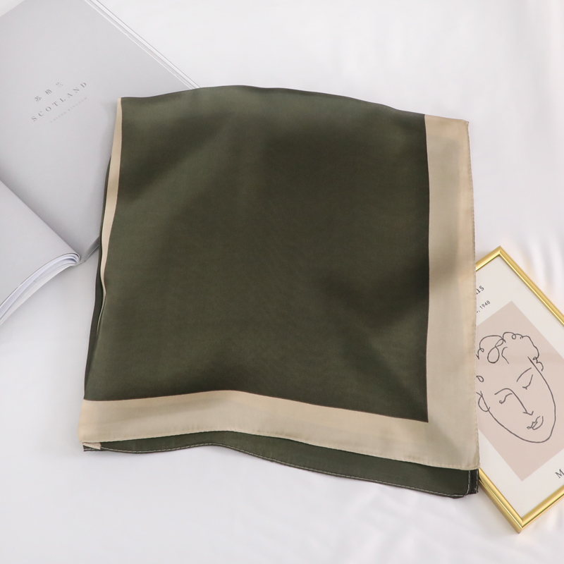Khăn Lụa Vuông Màu Xanh Rêu Màu Be - Mã KL366