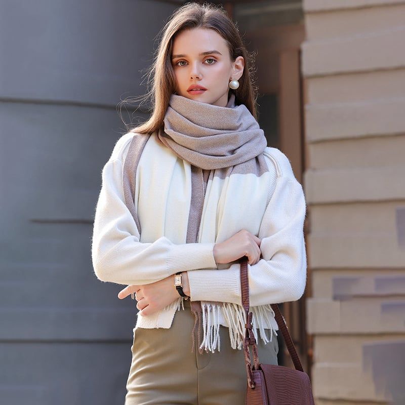 Mô tả Khăn quàng choàng cổ len Cashmere giữ ấm cao cấp phong cách châu Âu Mỹ sang trọng LÀ GU Khăn Phụ Kiện