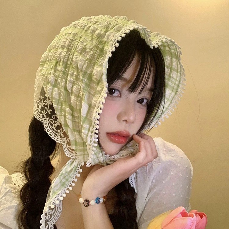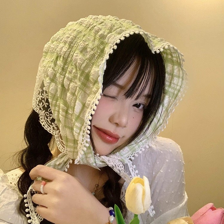 Mô tả Khăn trùm đầu kiểu turban bandana LÀ GU băng đô tam giác khăn chùm buộc đầu kiểu Pháp ngọt ngào