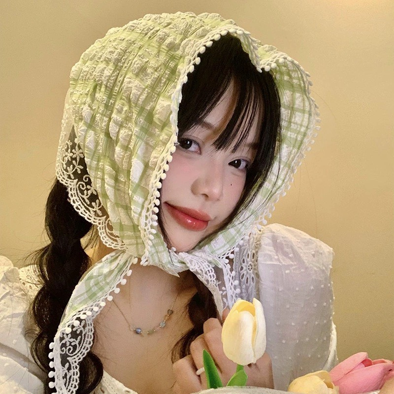 Mô tả Khăn trùm đầu kiểu turban bandana LÀ GU băng đô tam giác khăn chùm buộc đầu kiểu Pháp ngọt ngào: