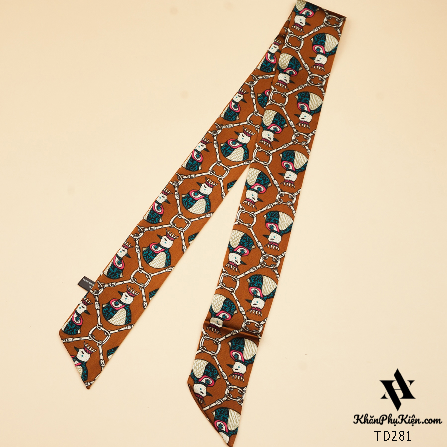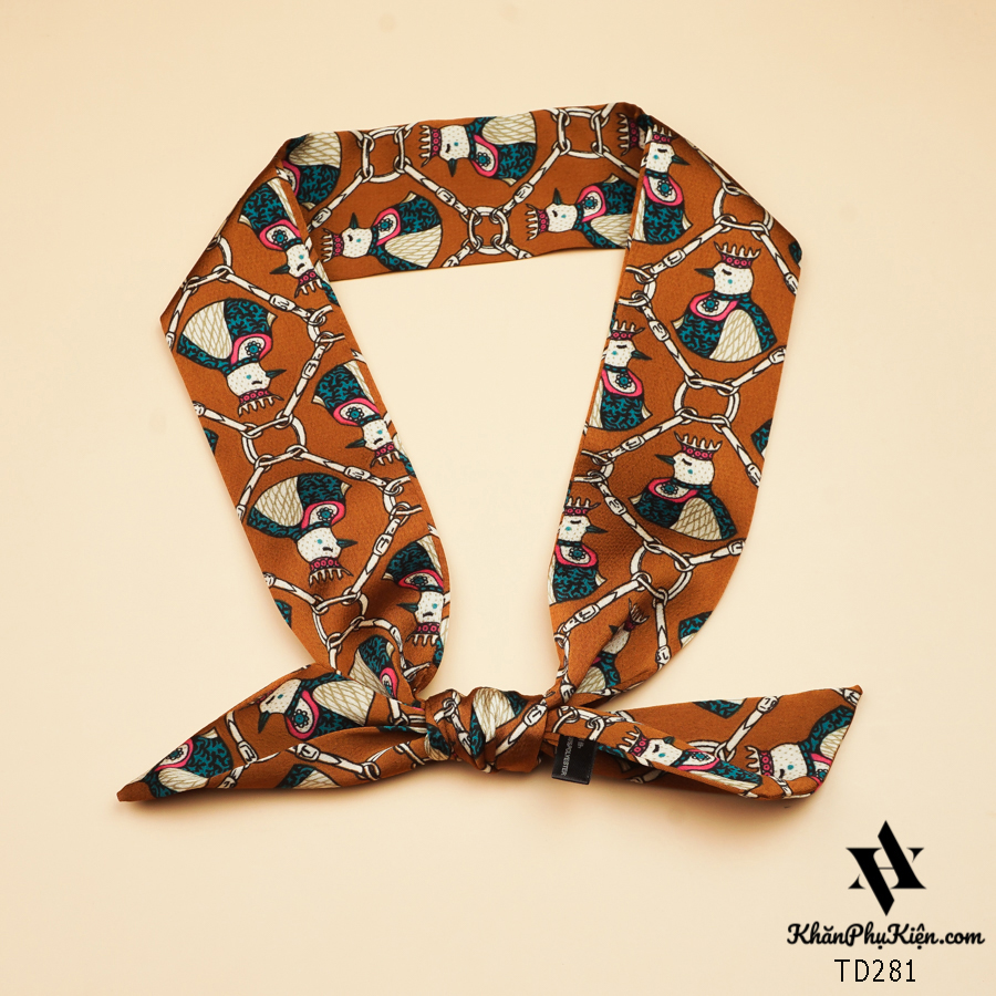 Khăn Turban Dài Họa Tiết Chim Đội Vương Miện Màu Hồng Xanh Nền Cam Đất - Mã TD281