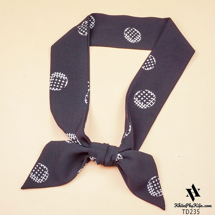 Khăn Turban Họa Tiết Tròn Trắng Nền Xanh Đen - Mã TD235