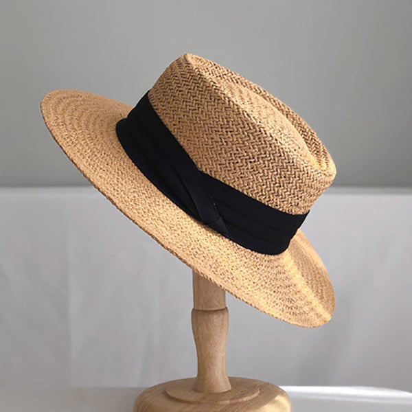 Mũ nón cói đi biển rộng vành tròn đẹp cho nữ sợi tự nhiên cao cấp dây đen - NC465
