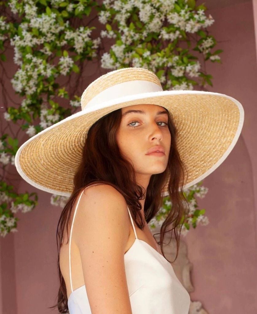 Mô tả Mũ nón cói đi biển rộng vành tròn đẹp cho nữ sợi tự nhiên cao cấp dây trắng - NC522