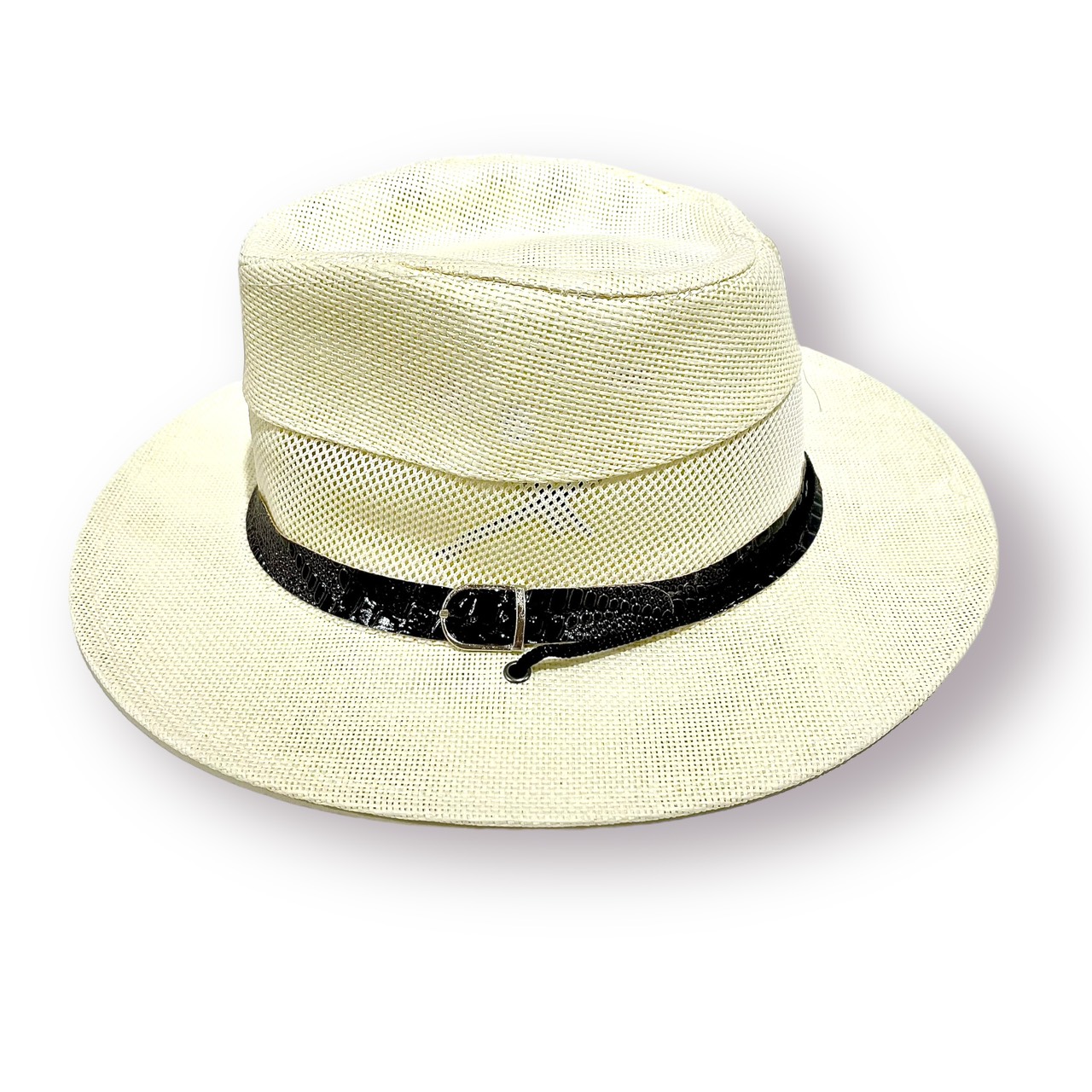 Mũ nón phớt Fedora cói lưới thắt da dành cho nam cao cấp LÀ GU nón cao bồi phong cách cổ điển pha lẫn hiện đại - Màu Trắng - MFDN007