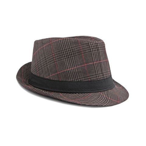 Mũ nón phớt Fedora nam vành nhỏ cao cấp LÀ GU nón cao bồi phong cách cổ điển pha lẫn hiện đại - Kẻ Sọc Nâu Viền Đỏ - MFDN002