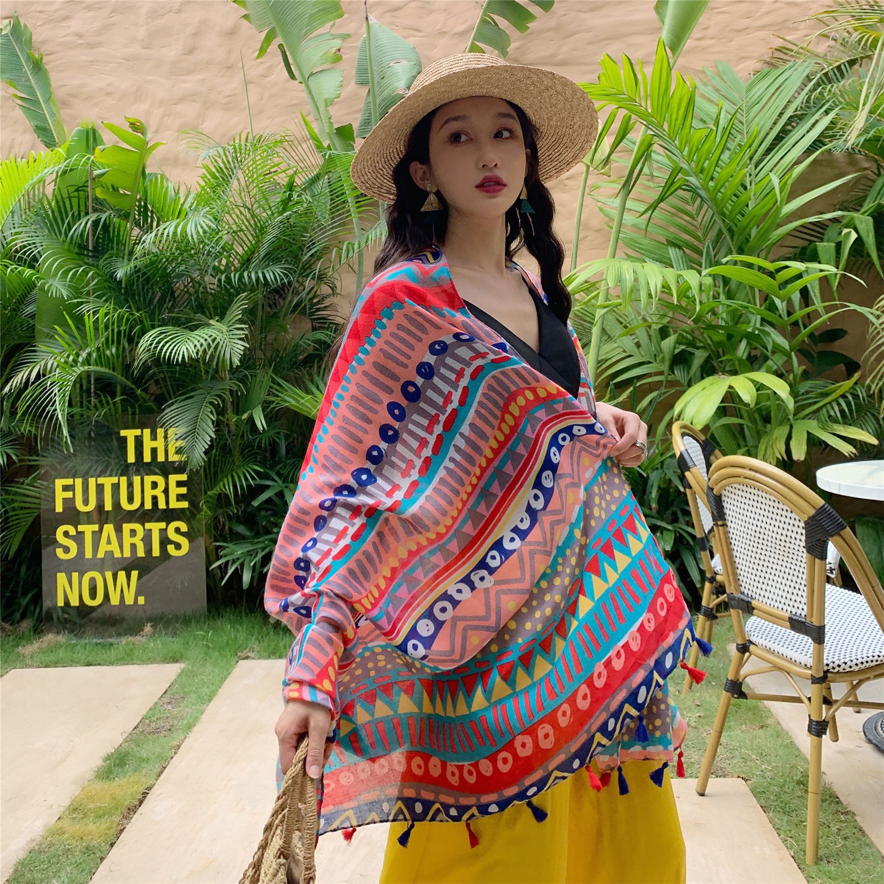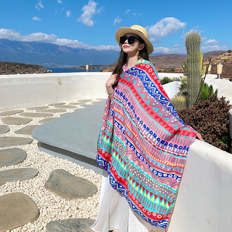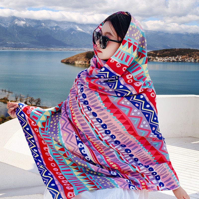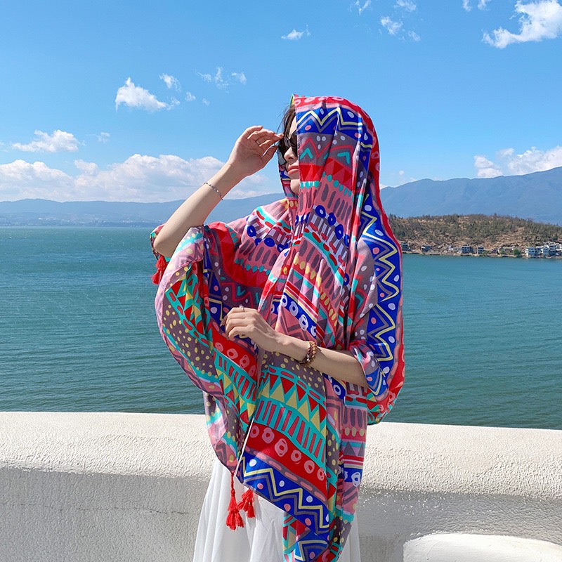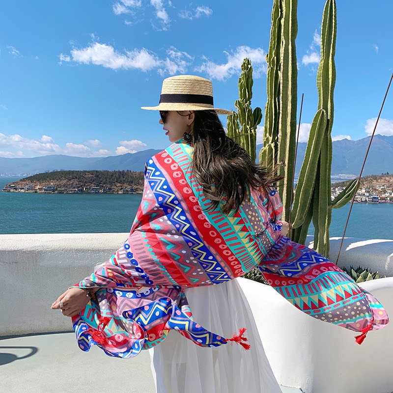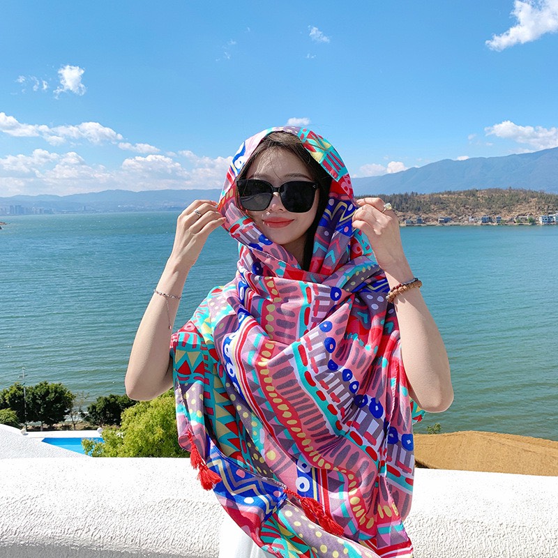 Khăn quàng choàng cổ nữ đi biển boho thổ cẩm đẹp cao cấp màu đỏ họa tiết - Mã KC422