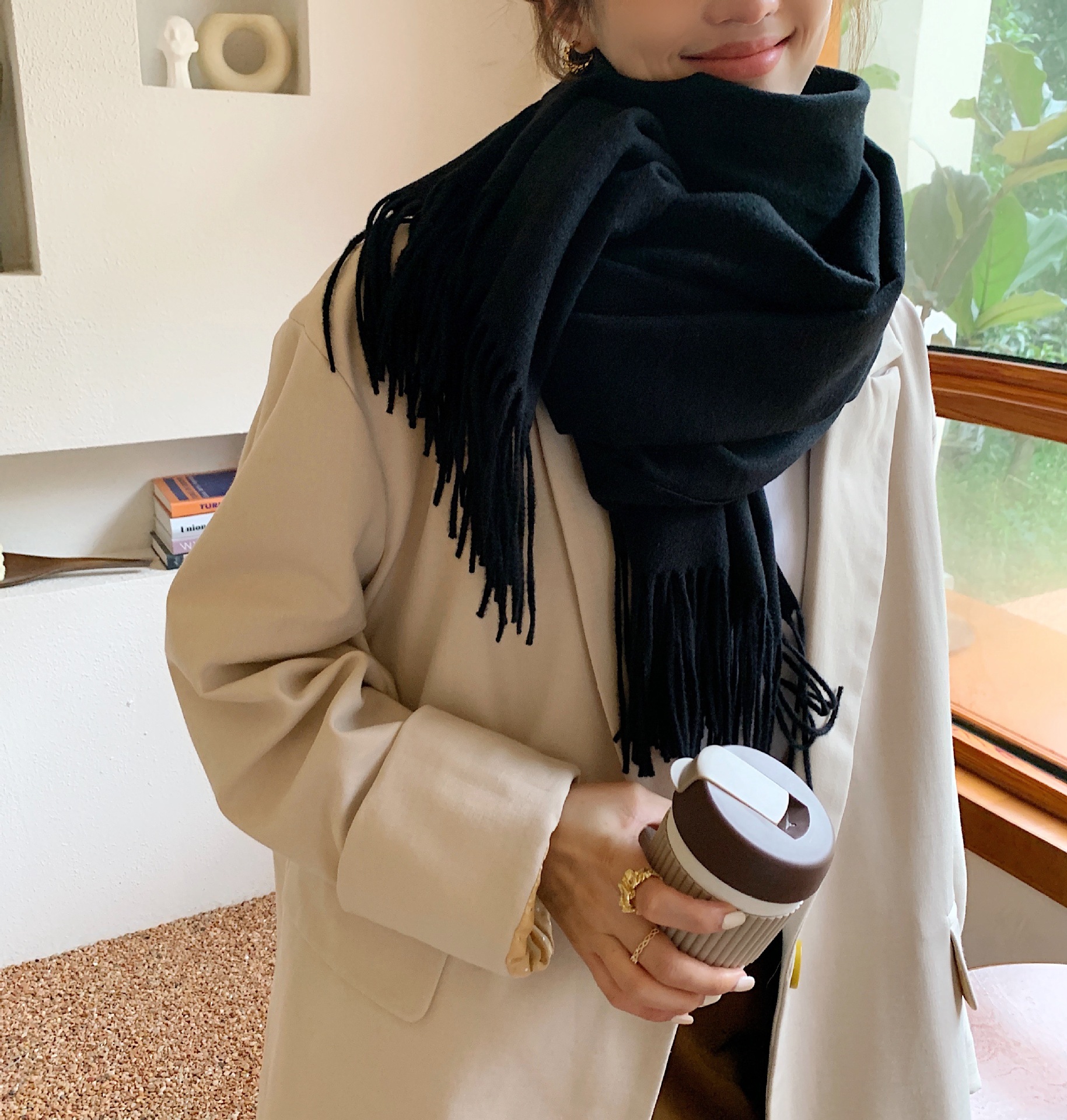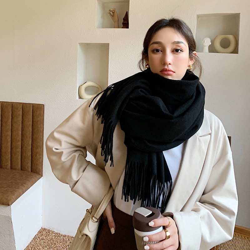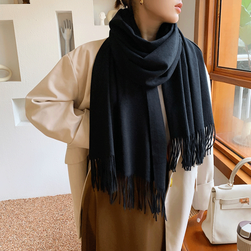 Quà 20/11 tặng cho cô giáo - Khăn Choàng Cổ Len Dạ Màu Đen Trơn - Cashmere - 200x60cm - Mã KC074