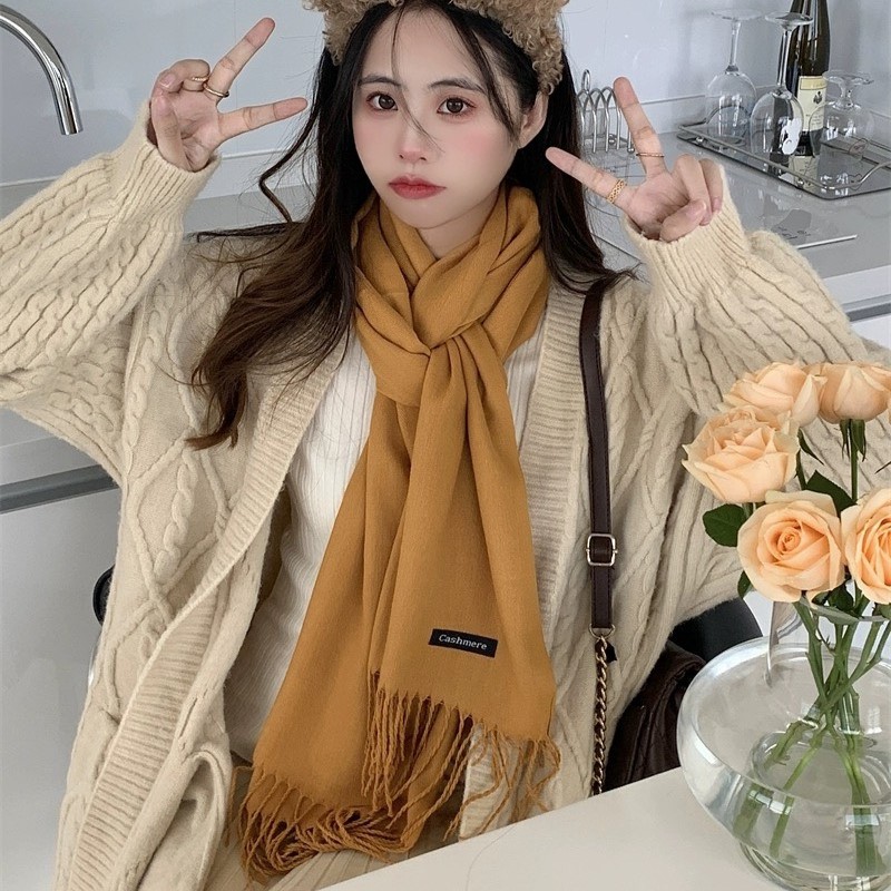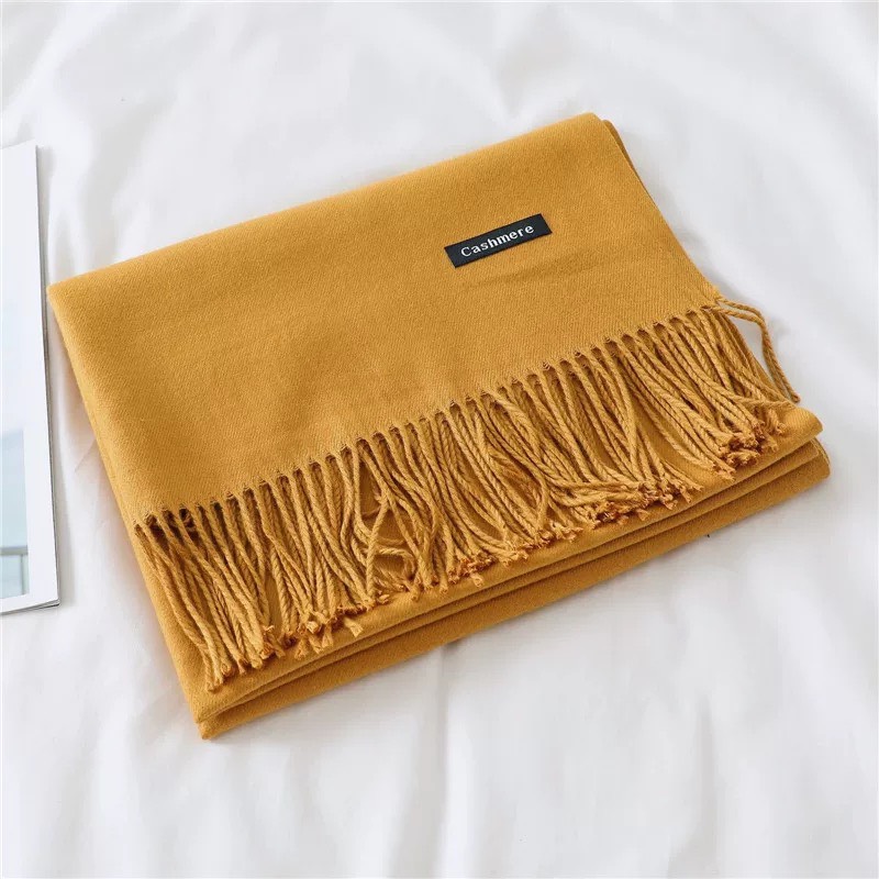Quà tặng 20/10 cho mẹ nên tặng gì - quàng choàng cổ len Cashmere giữ ấm màu vàng nghệ cao cấp đẹp sang trọng - Mã KC079