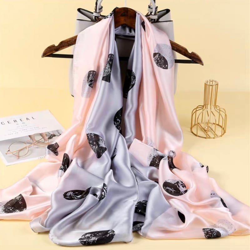 Quà tặng 20/10 cho sếp nữ, vợ, cô giáo, giáo viên nữ, mẹ và bạn gái, người yêu nữ quà tặng khăn choàng cổ lụa hồng phối xám họa tiết hoa hồng LAGU Khăn Phụ Kiện