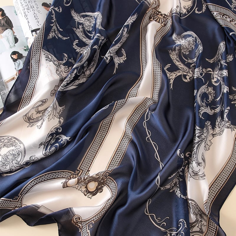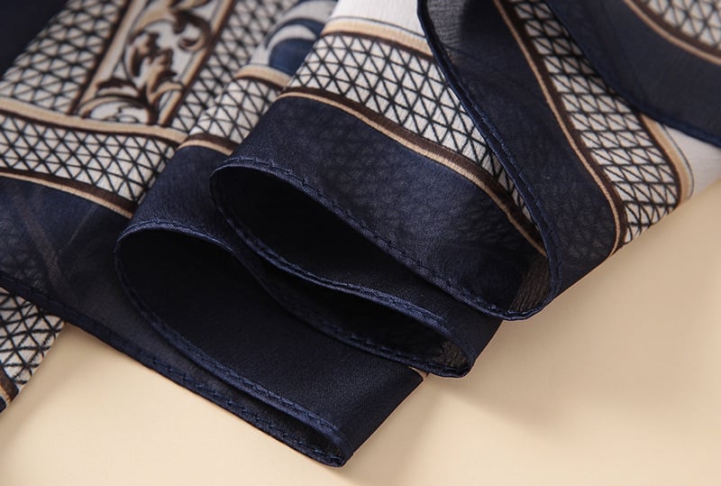 Mô tả Quà tặng 20/10 cho sếp nữ, vợ, cô giáo, giáo viên nữ, mẹ và bạn gái, người yêu nữ quà tặng khăn quàng choàng cổ lụa cao cấp cho nữ văn phòng sở đẹp màu xanh đen họa tiết viền đen LAGU Khăn Phụ Kiện