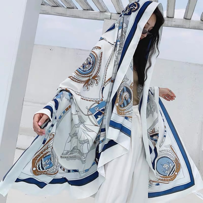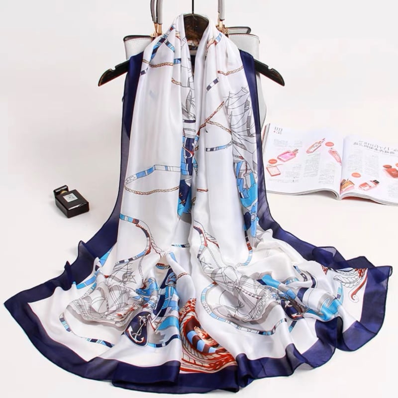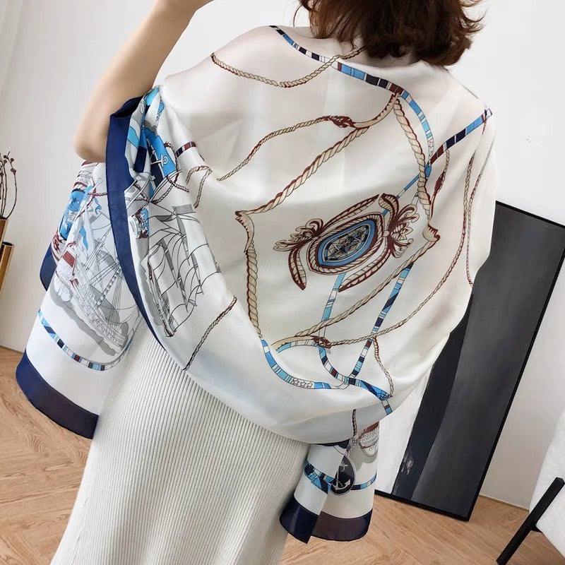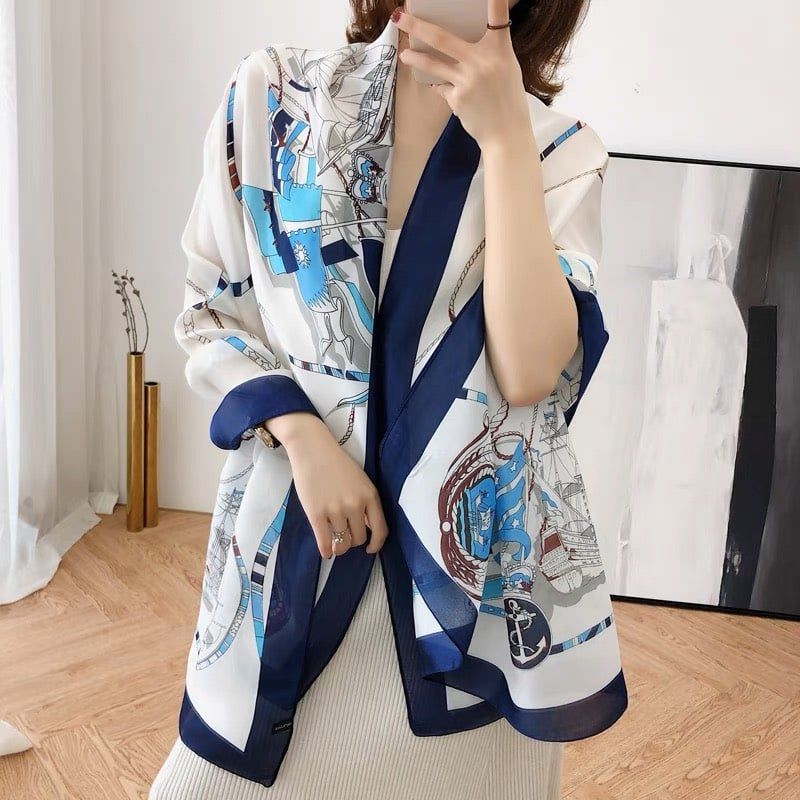 Mô tả Quà tặng 20/10 cho sếp nữ, vợ, cô giáo, giáo viên nữ, mẹ và bạn gái, người yêu nữ quà tặng khăn quàng choàng cổ lụa cao cấp cho nữ văn phòng sở đẹp trắng phối xanh dương họa tiết LAGU Khăn Phụ Kiện - KS171