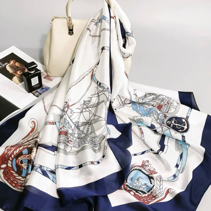 Quà tặng 20/10 cho sếp nữ, vợ, cô giáo, giáo viên nữ, mẹ và bạn gái, người yêu nữ quà tặng khăn quàng choàng cổ lụa cao cấp cho nữ văn phòng sở đẹp trắng phối xanh dương họa tiết LAGU Khăn Phụ Kiện - KS171
