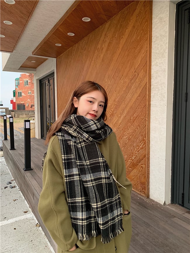 Quà tặng 20/10 cho sếp nữ, vợ, cô giáo, giáo viên nữ, mẹ và bạn gái, người yêu nữ quà tặng khăn quàng choàng cổ len Cashmere giữ ấm cao cấp caro màu đen đẹp sang trọng - KC399