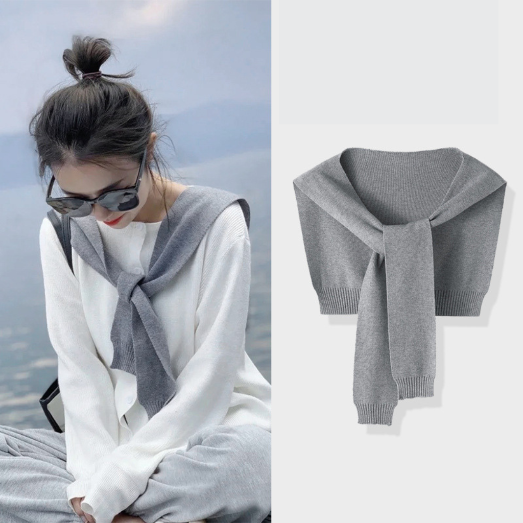 Quà tặng 20/10 cho sếp nữ, vợ, cô giáo, giáo viên nữ, mẹ và bạn gái, người yêu nữ quà tặng khăn quàng choàng cổ len khoác giả áo đẹp cho nữ kẻ sọc chất dệt kim mềm mịn cao cấp thủy thủ -Màu Xám - KGA001