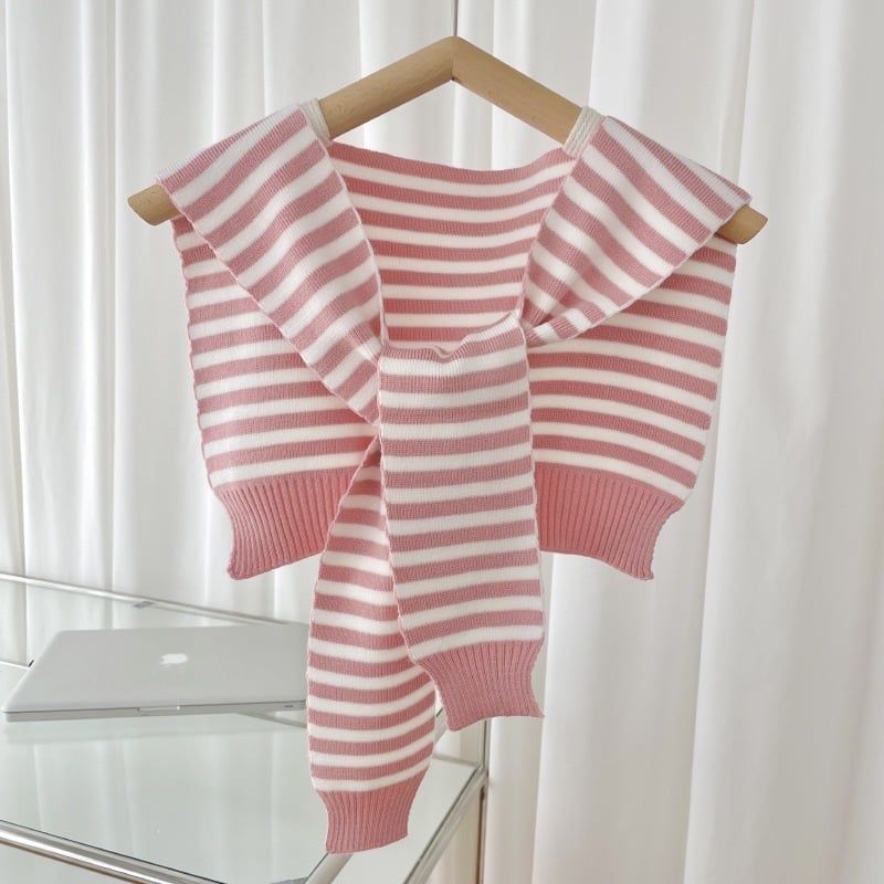 Quà tặng 20/10 cho sếp nữ, vợ, cô giáo, giáo viên nữ, mẹ và bạn gái, người yêu nữ quà tặng khăn quàng choàng cổ len khoác giả áo đẹp cho nữ kẻ sọc chất dệt kim mềm mịn cao cấp thủy thủ -Màu hồng sọc to - KGA001